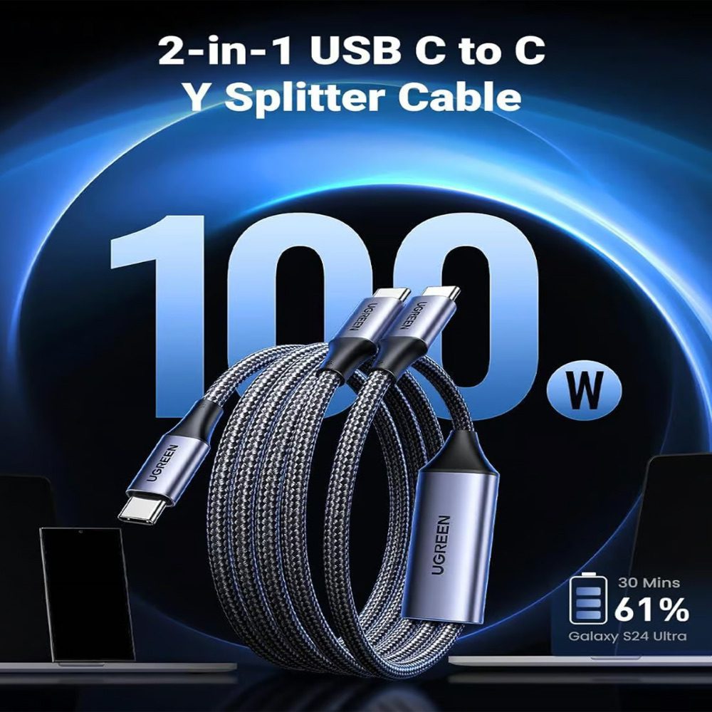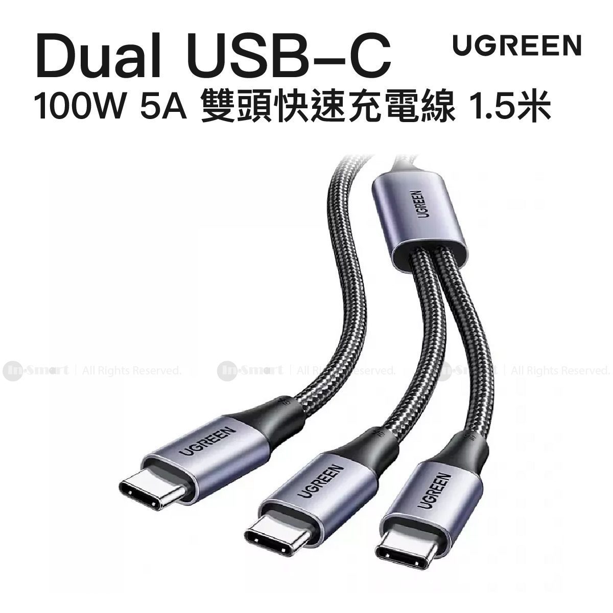 UGREEN PD100W 5A USB-C 雙 USB-C 快速充電線 1.5米