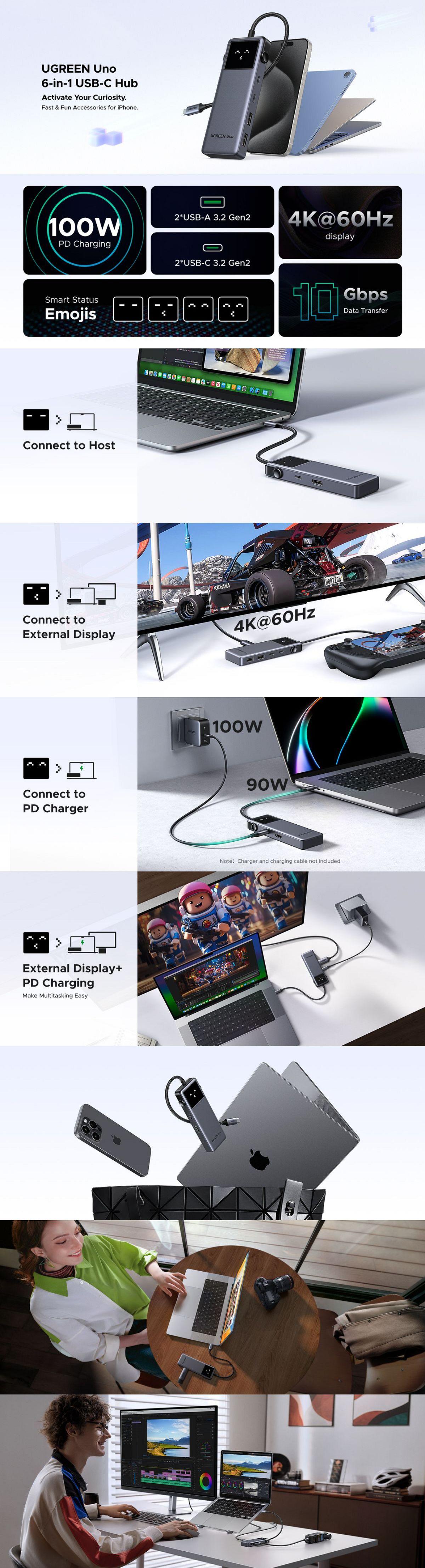 UGREEN – Revodok 105 USB C 集線器 5合1 多端口適配器 4K HDMI | 100W 電源供應 | 3 個 USB-A 數據端口 | CM478/ 15495