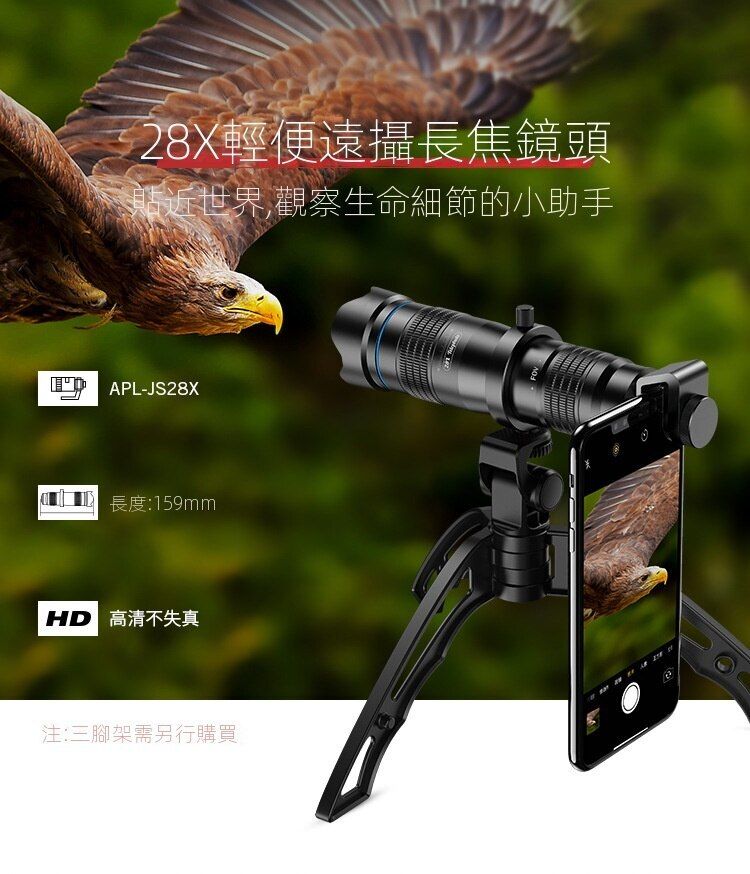 APEXEL 28倍全金屬單筒外置長焦手機鏡頭 (JS28X) | 光學玻璃鍍膜+BK4棱鏡組合 | 望遠鏡功能 | 41432001
