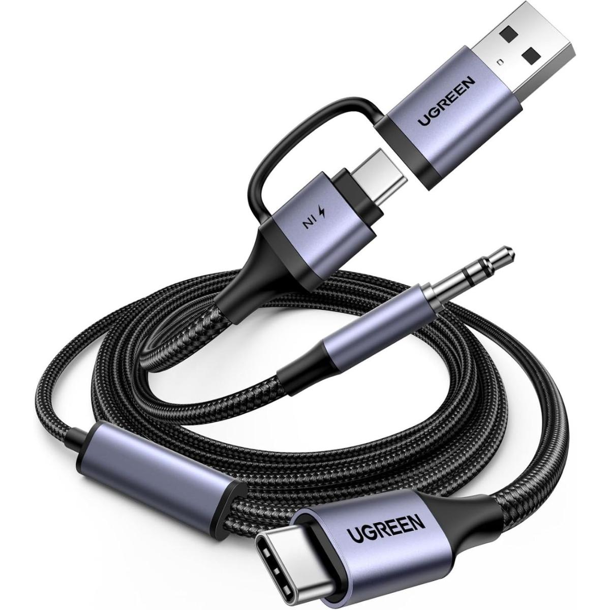 UGREEN USB-C 轉 3.5mm 音訊線與充電線 2合1,高清音質 Type-C 轉 Aux TRS 耳機車載立體聲,支援 PD 60W 快速充電,適用於 iPhone 16 Pro Max、Galaxy S25、Pixel 9、iPad Pro、Switch 2,長度 1.5 米。