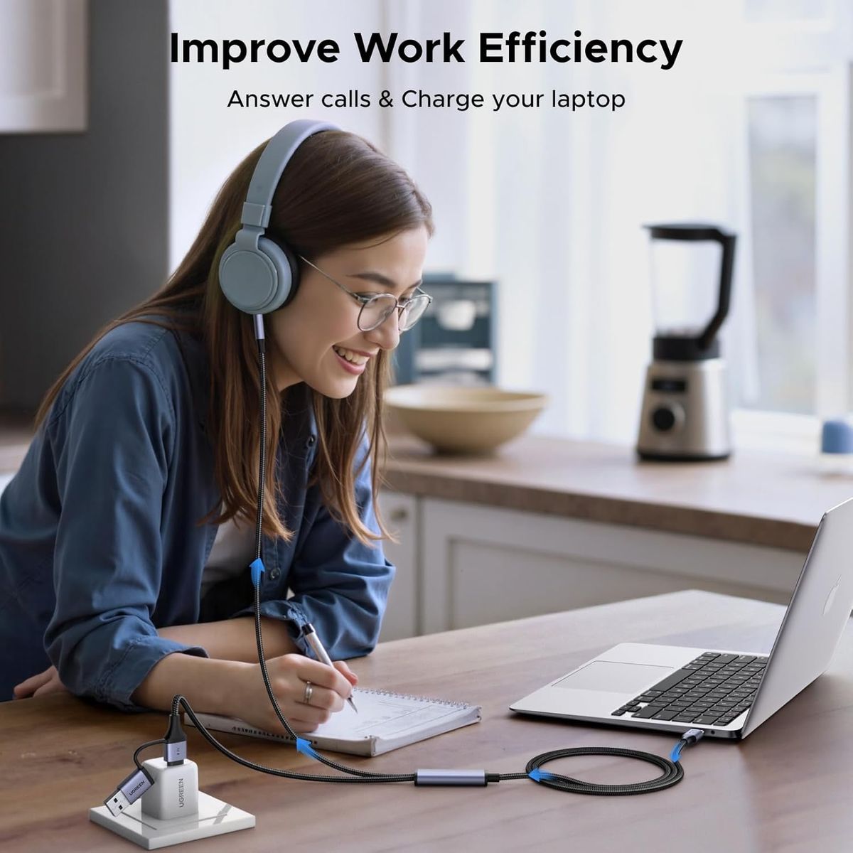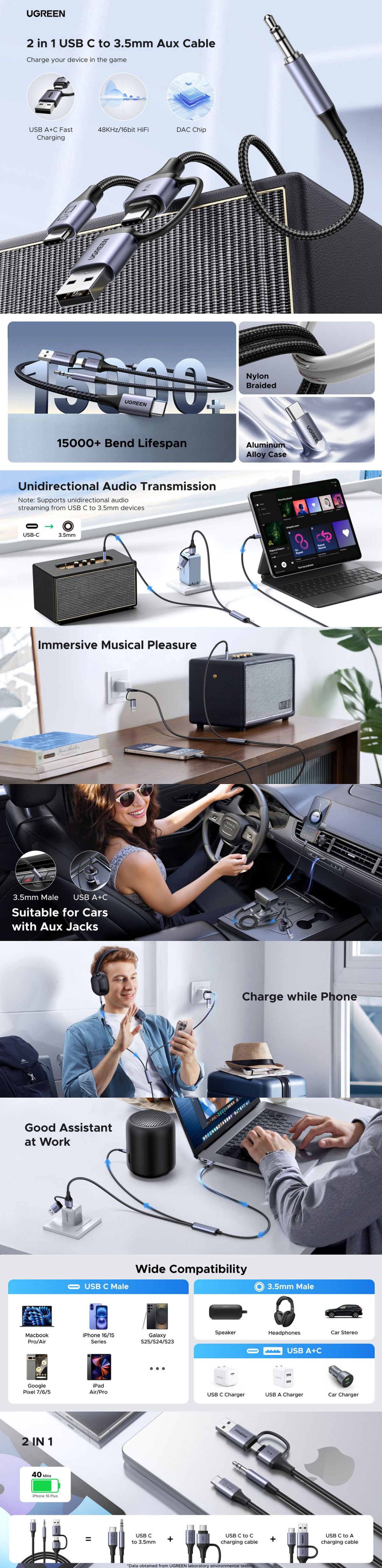 UGREEN USB-C 轉 3.5mm 音訊線與充電線 2合1 | CM772/ 45009