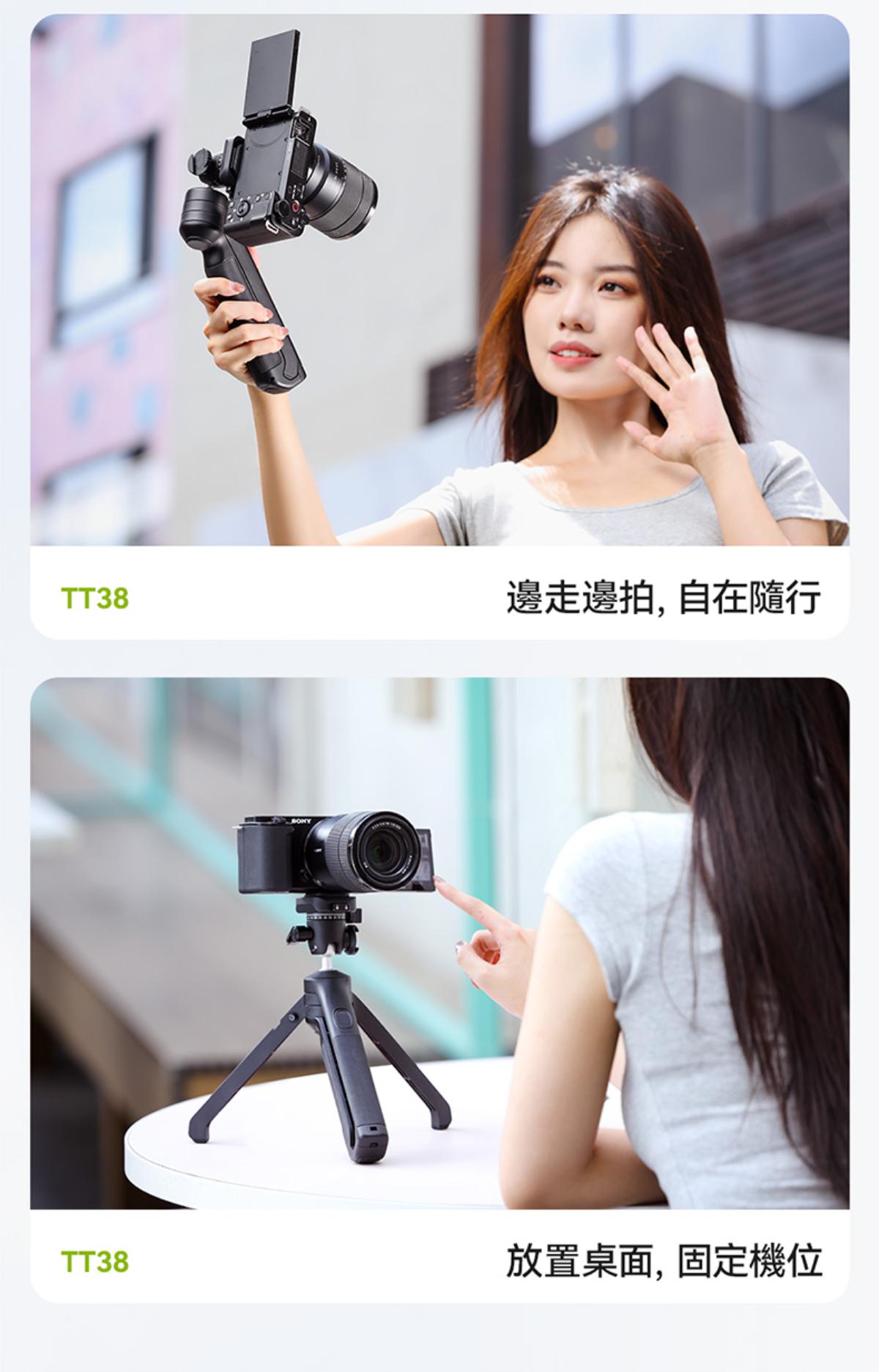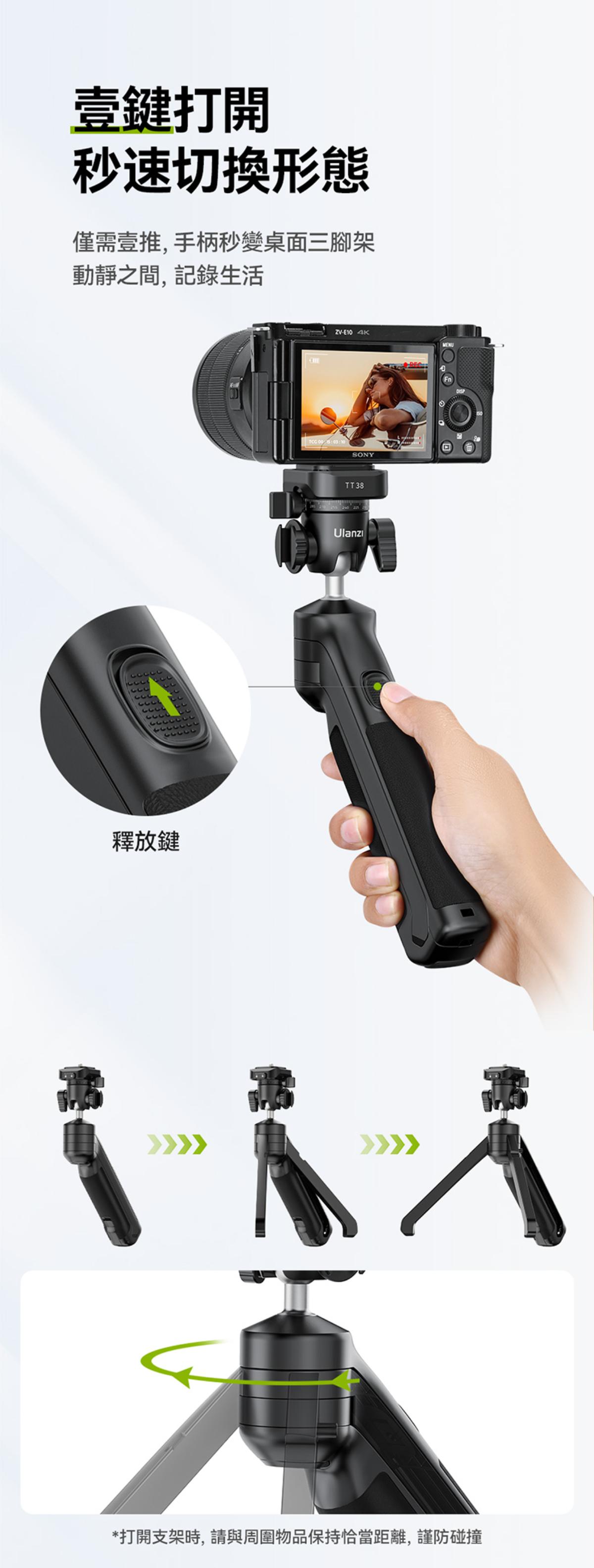 - 一鍵打開移動拍攝手柄,桌面三腳架一步快裝