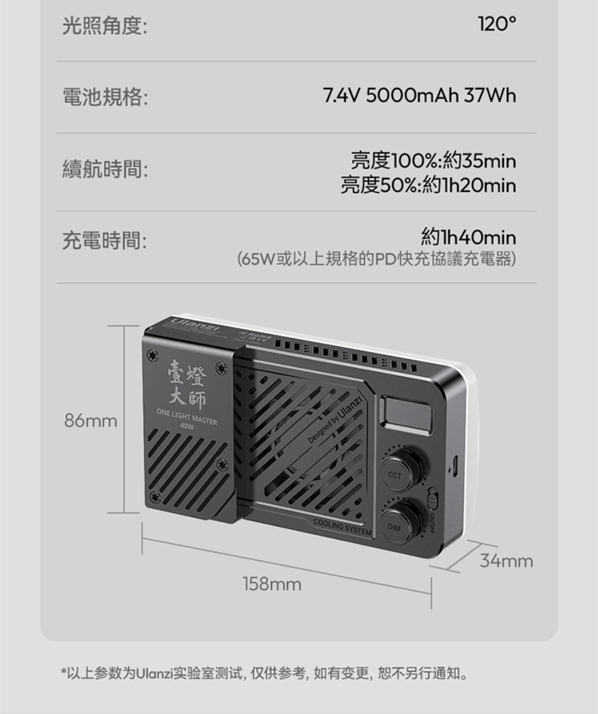 - 多種應用場景,包括人像、靜物、美食、直播補光及光繪藝術等