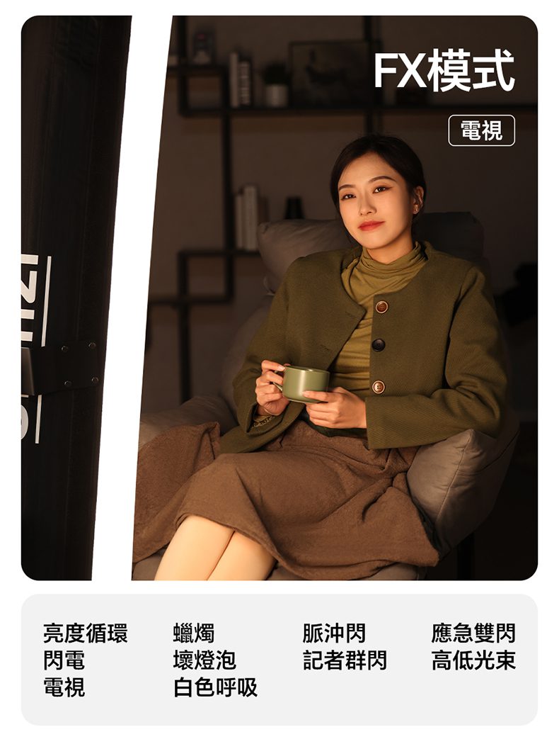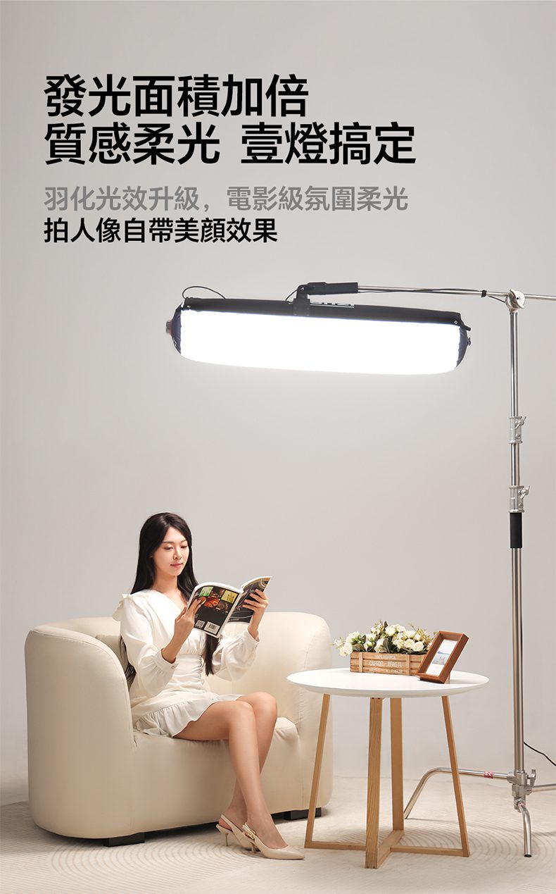 - 柔光面積廣闊,提供電影級質感柔光效果,拍攝人像時自然美顏。