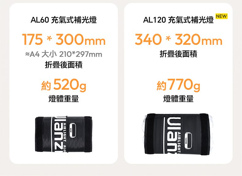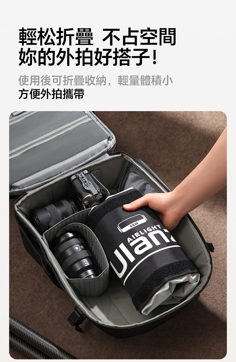 - 充氣式設計,輕便易攜,收起後僅約 A4 大小。
