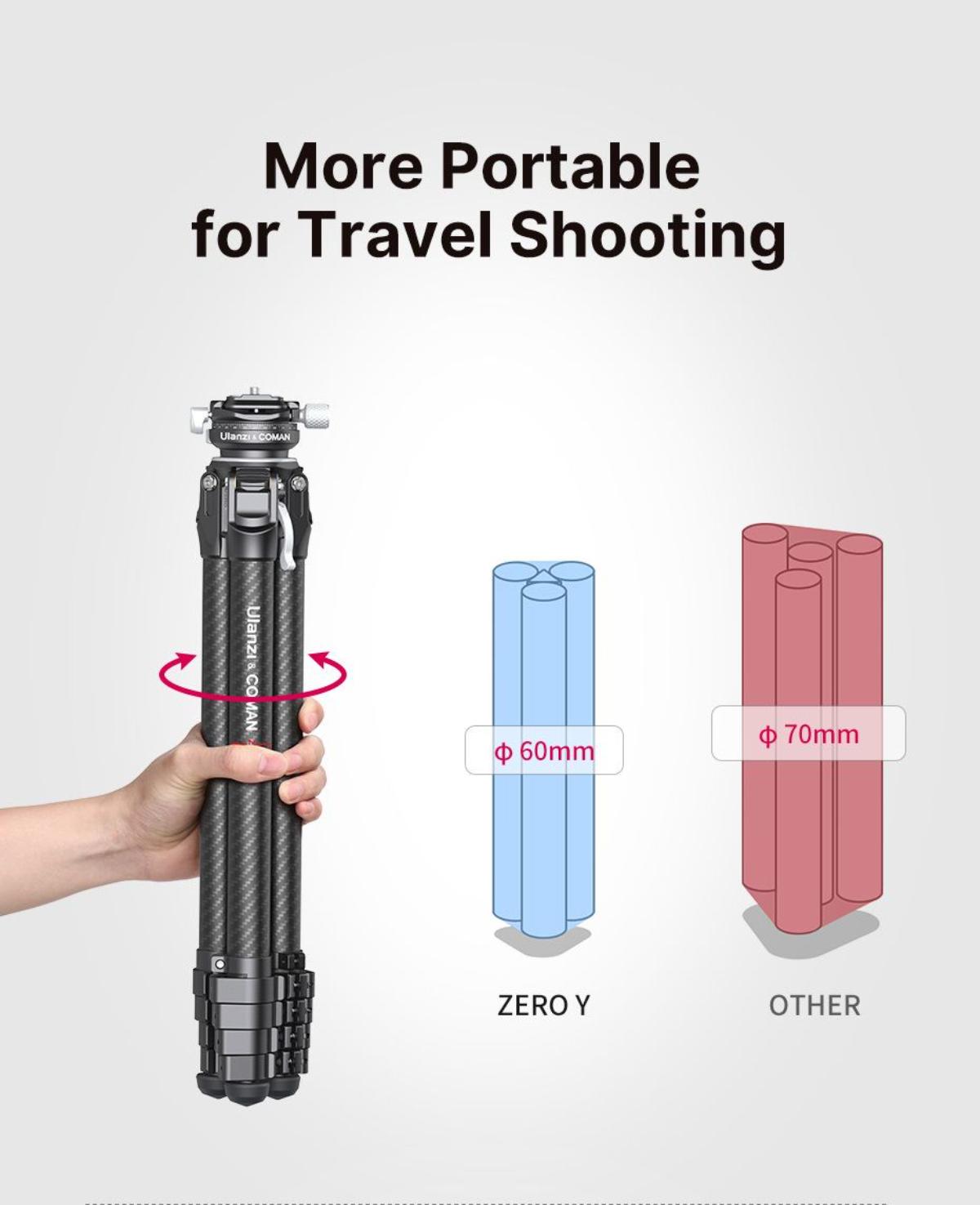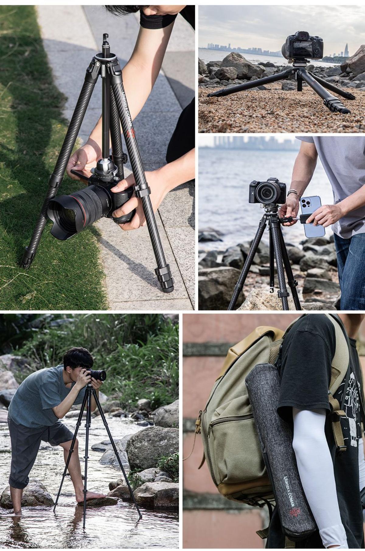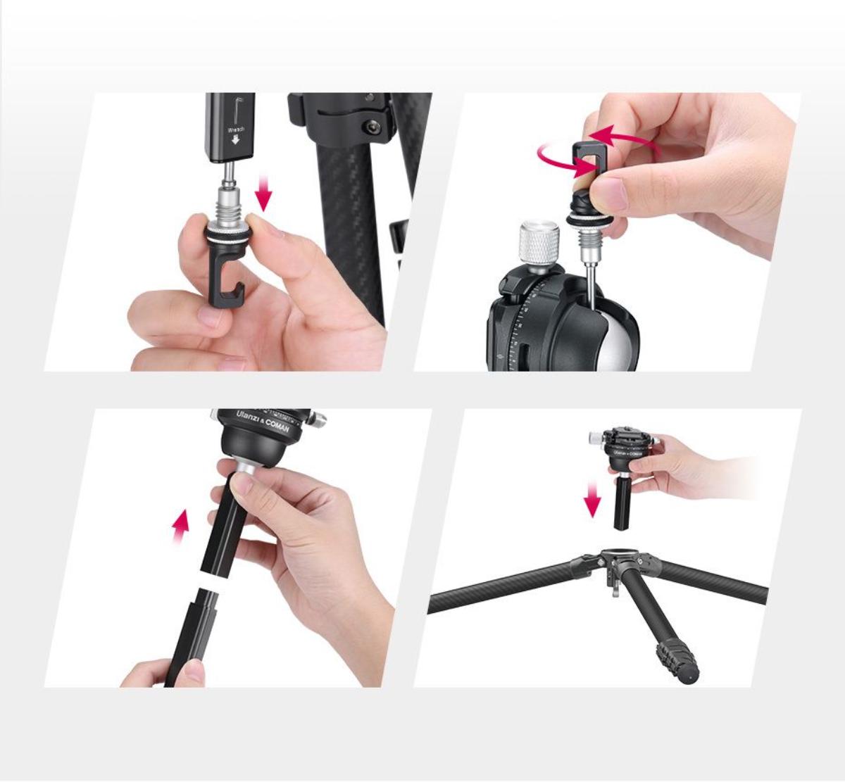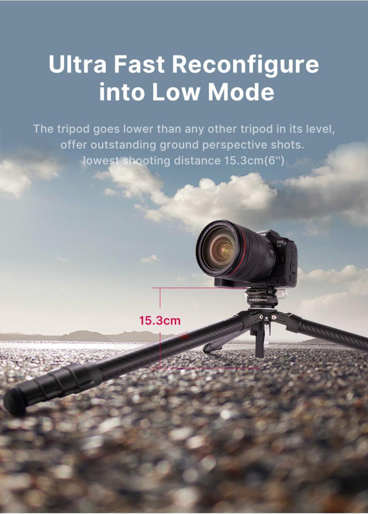 - 中軸採用創新兩節可拆結構,方便低角度拍攝,同時支持倒置模式。