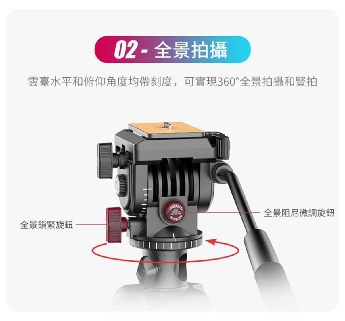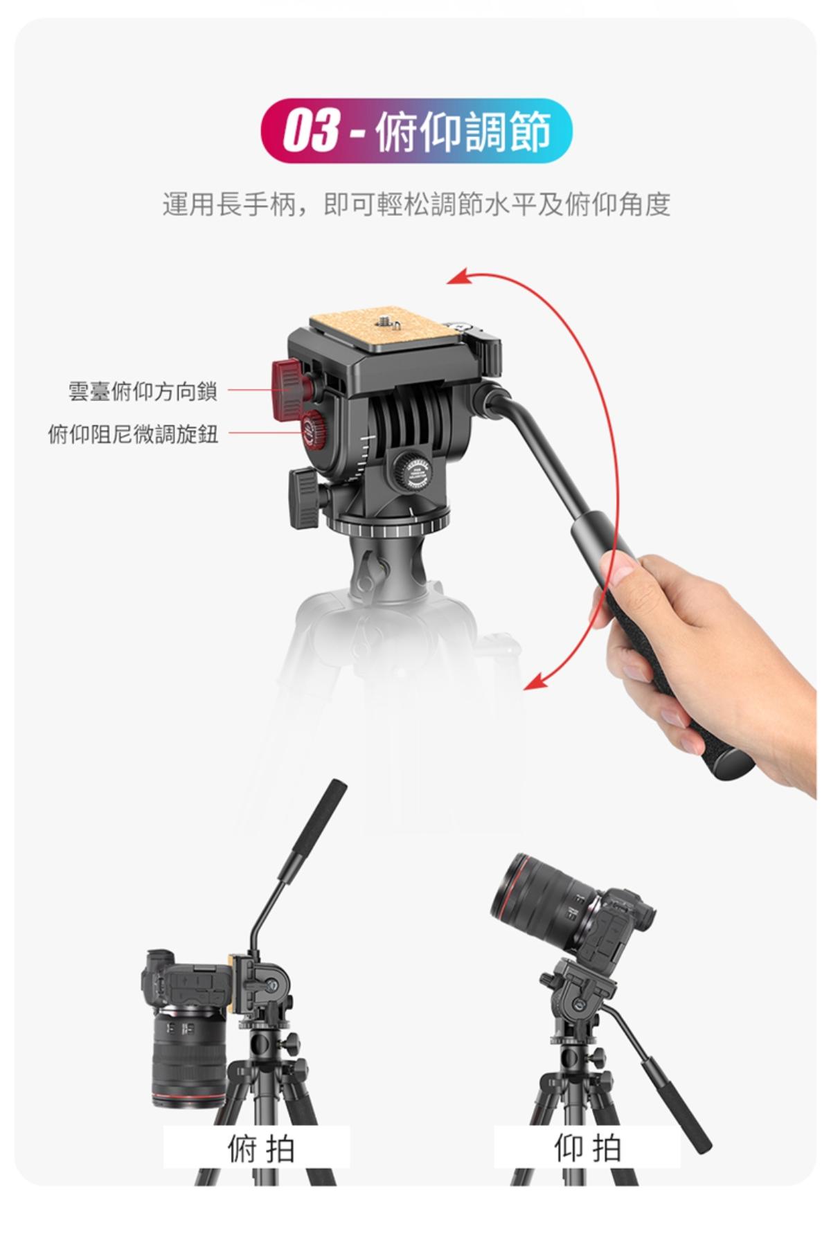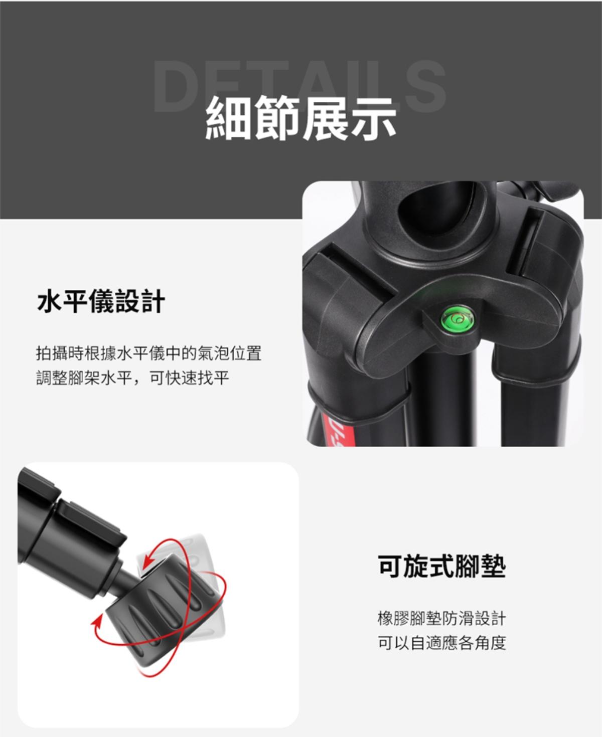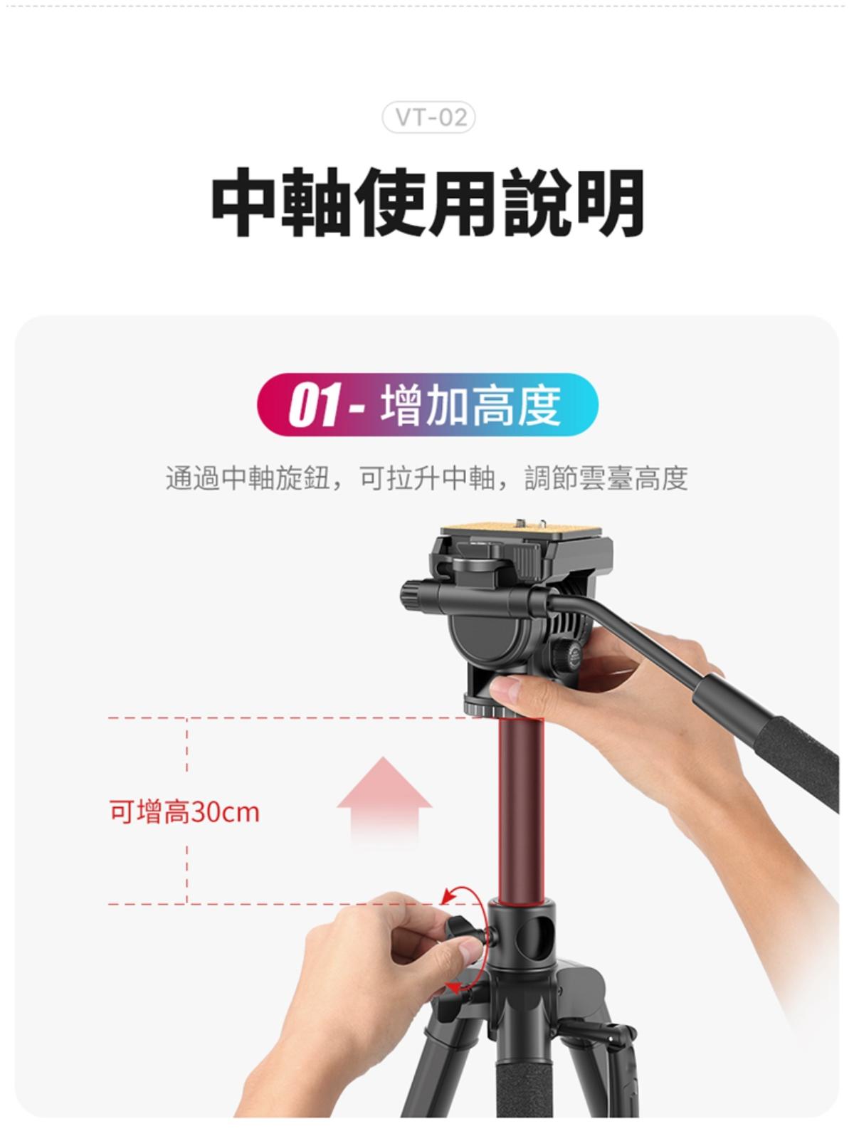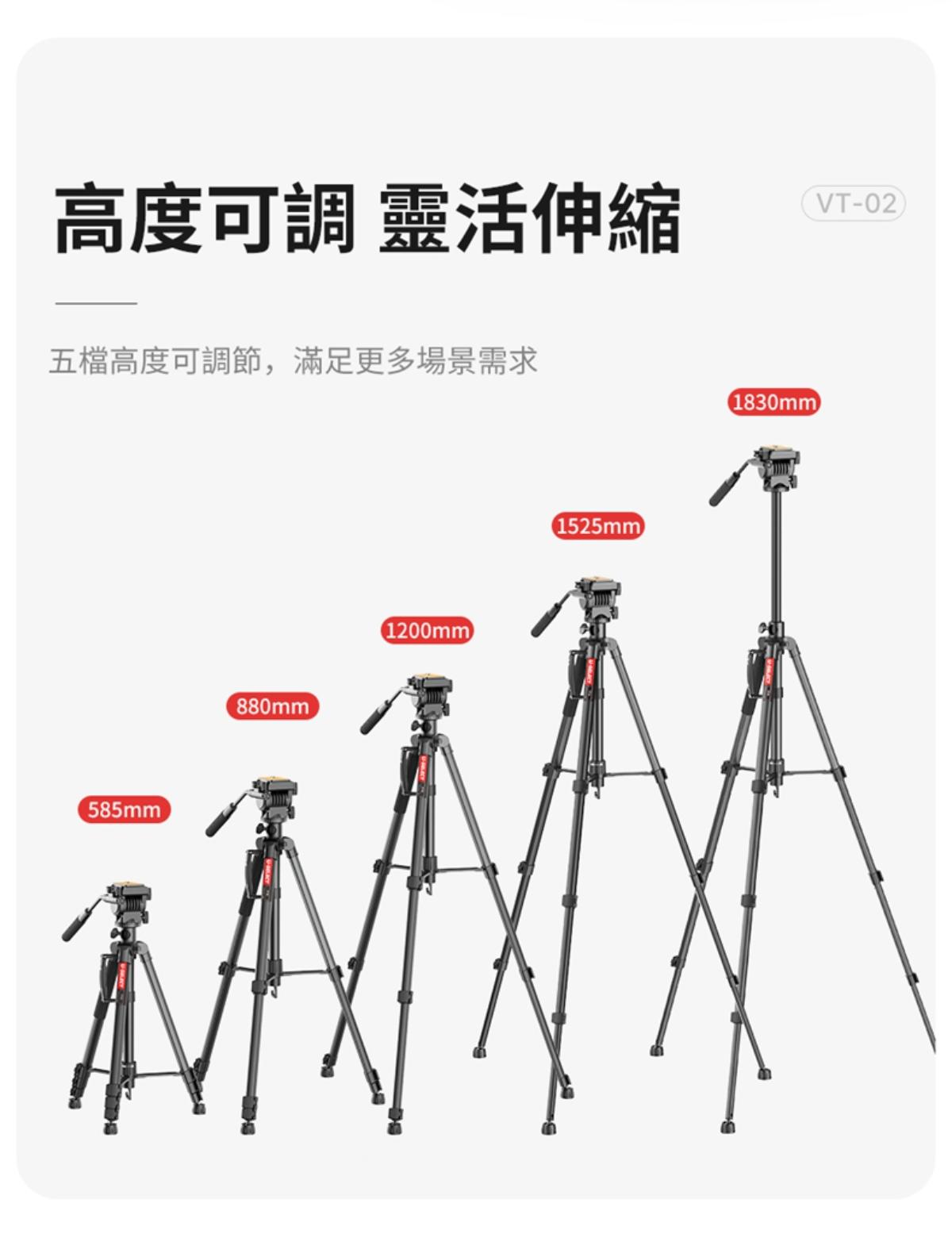 - 高度可調節,最低58.5公分至最高183公分,滿足多種拍攝需求