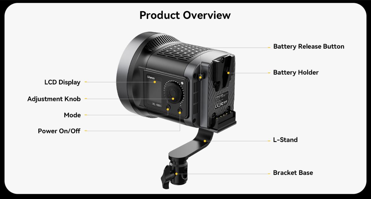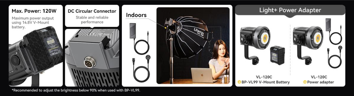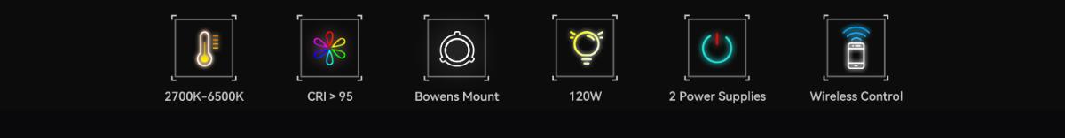 - 120W高亮柔光,提供穩定且均勻的光源。