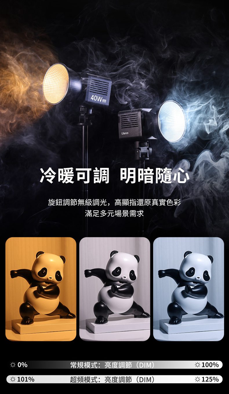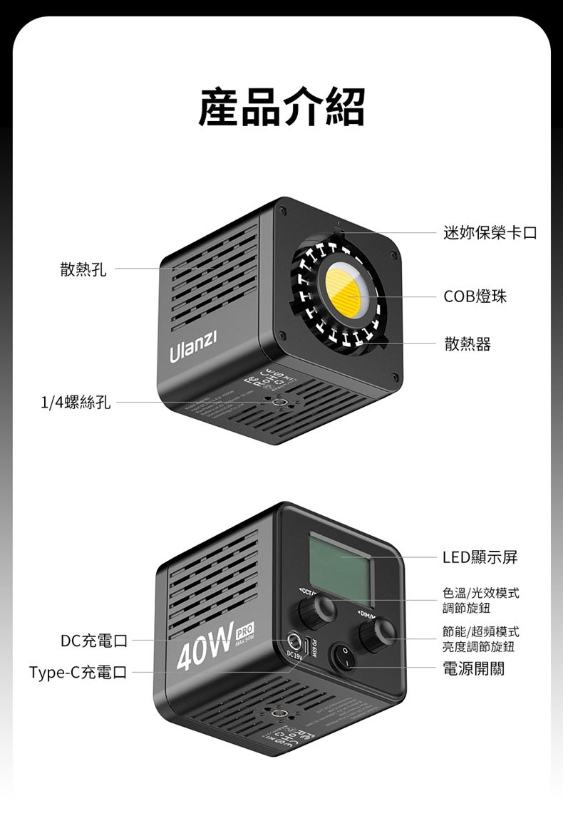 - 高顯色指數:顯色指數達 96+,能高度還原物體真實色彩,讓拍攝畫面色彩更鮮豔、自然、逼真,適合對色彩還原度要求極高的專業攝影與影片創作。