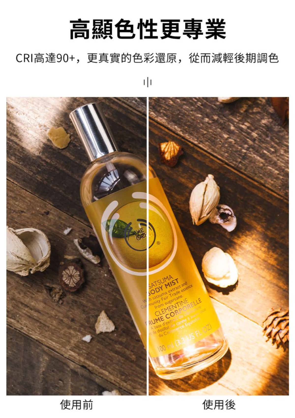 - CRI高達90+,真實還原色彩,減少後期調色需求