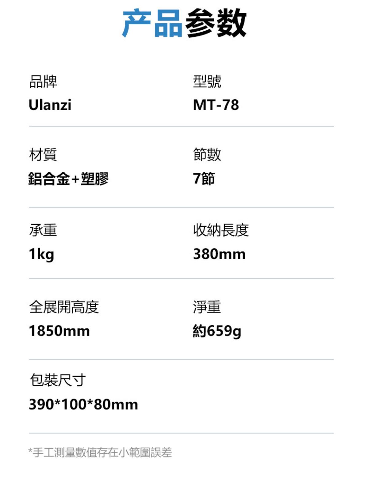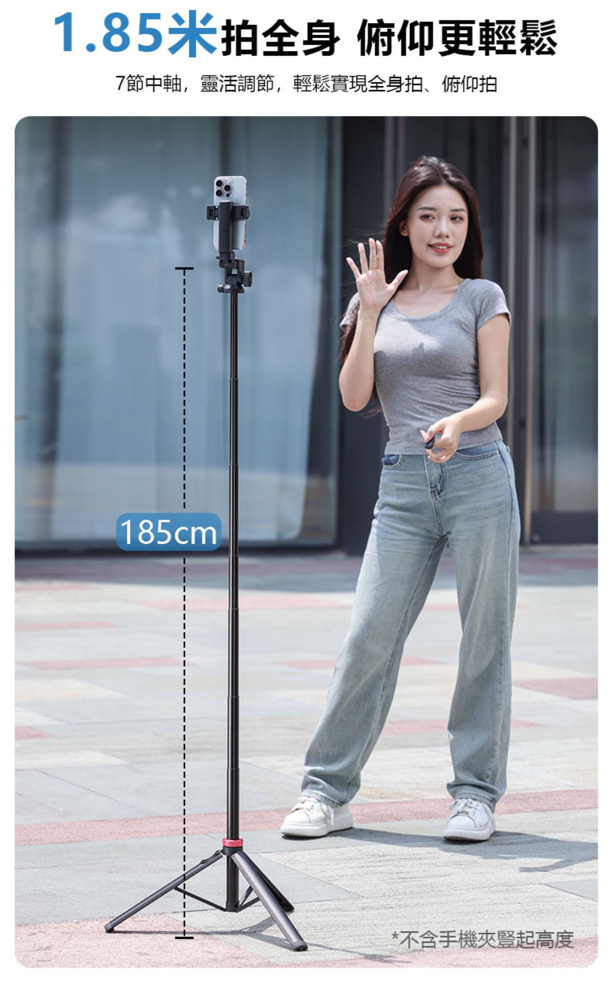 - 最大展開高度達1.85米,適合全身拍攝