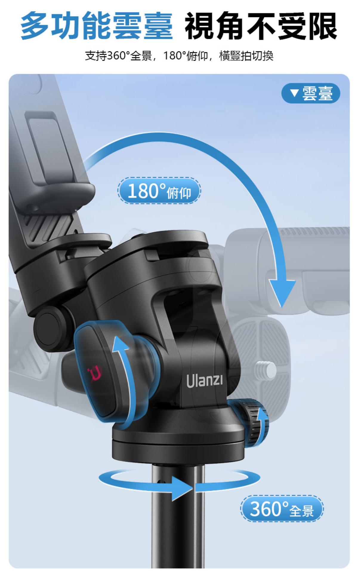 - 多功能雲台,支持360°全景旋轉與180°俯仰調整