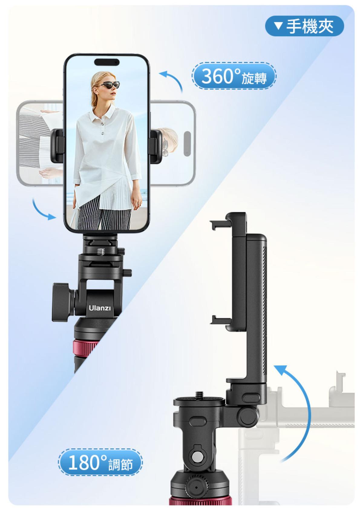 - 手機夾具備360°旋轉功能,角度調整靈活