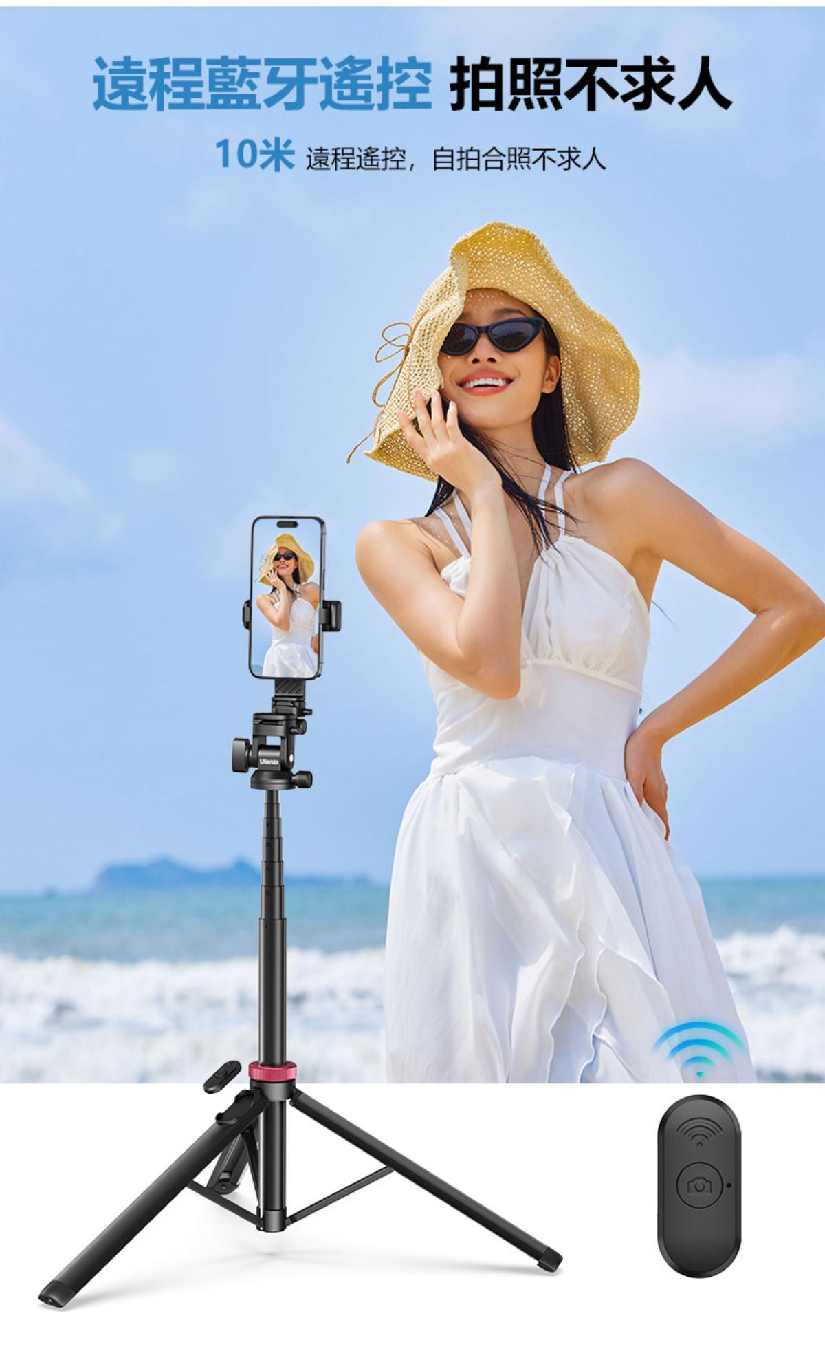 - 配備遠程藍牙遙控器,最遠可達10米,自拍無需他人協助