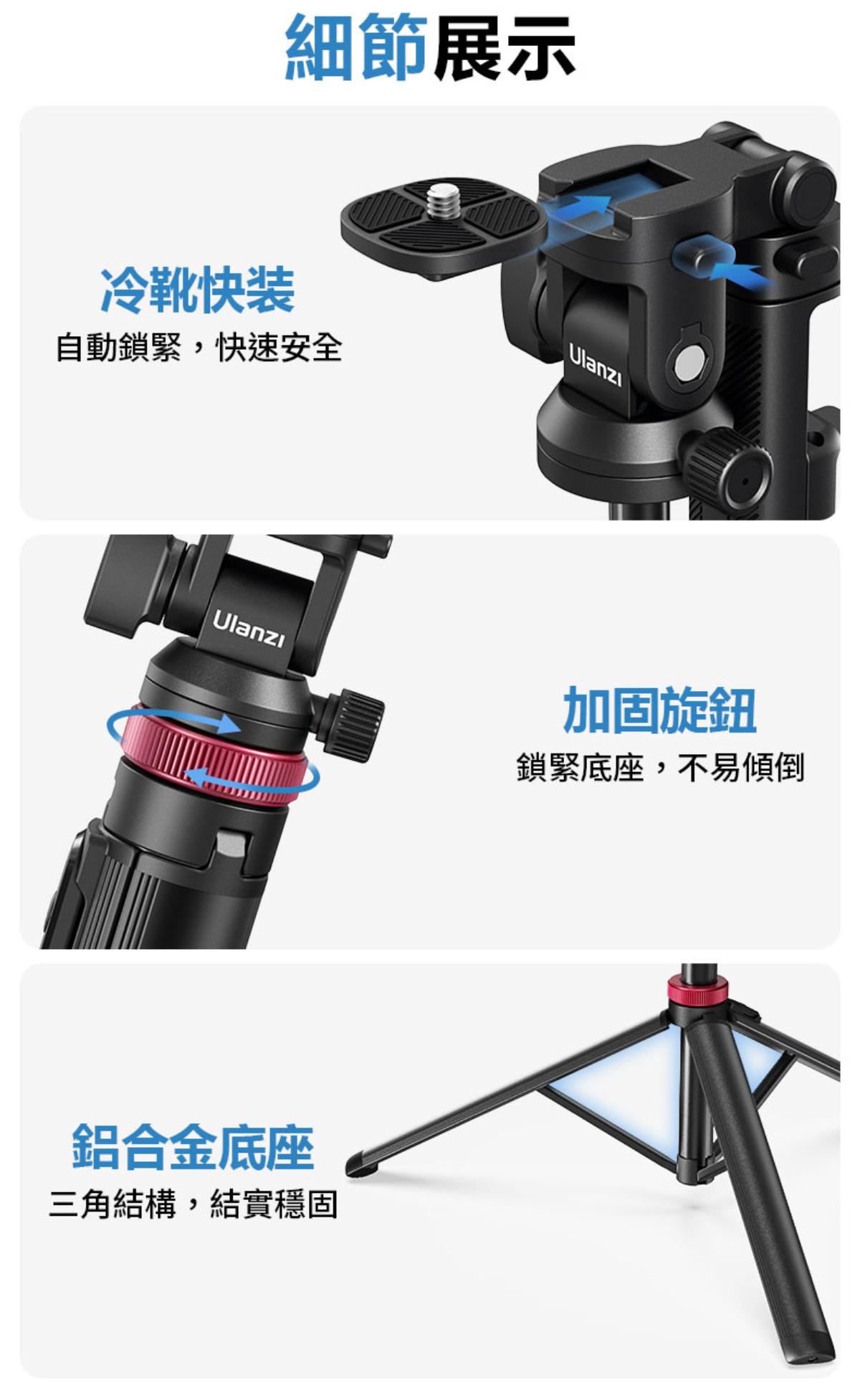 - 採用鋁合金底座,三角結構設計,穩定性高