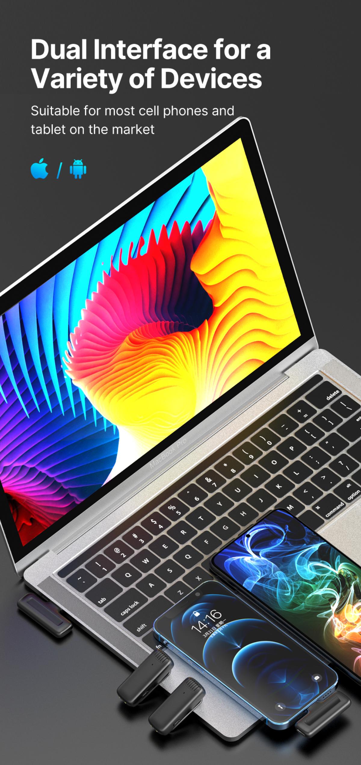 Ulanzi J12 無線領夾式麥克風 – 蘋果版 | 跨場景聲音不失真 | 65ft無線接收 | 自動連線即插即用