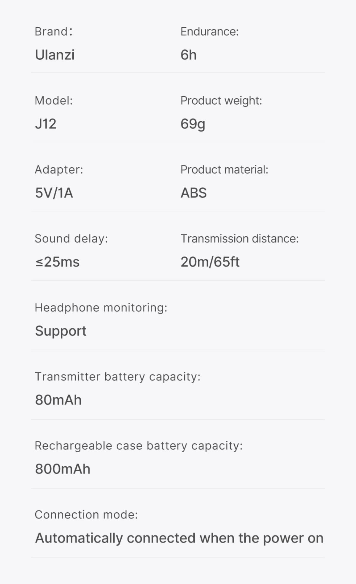 - 發射器電池容量:80mAh
