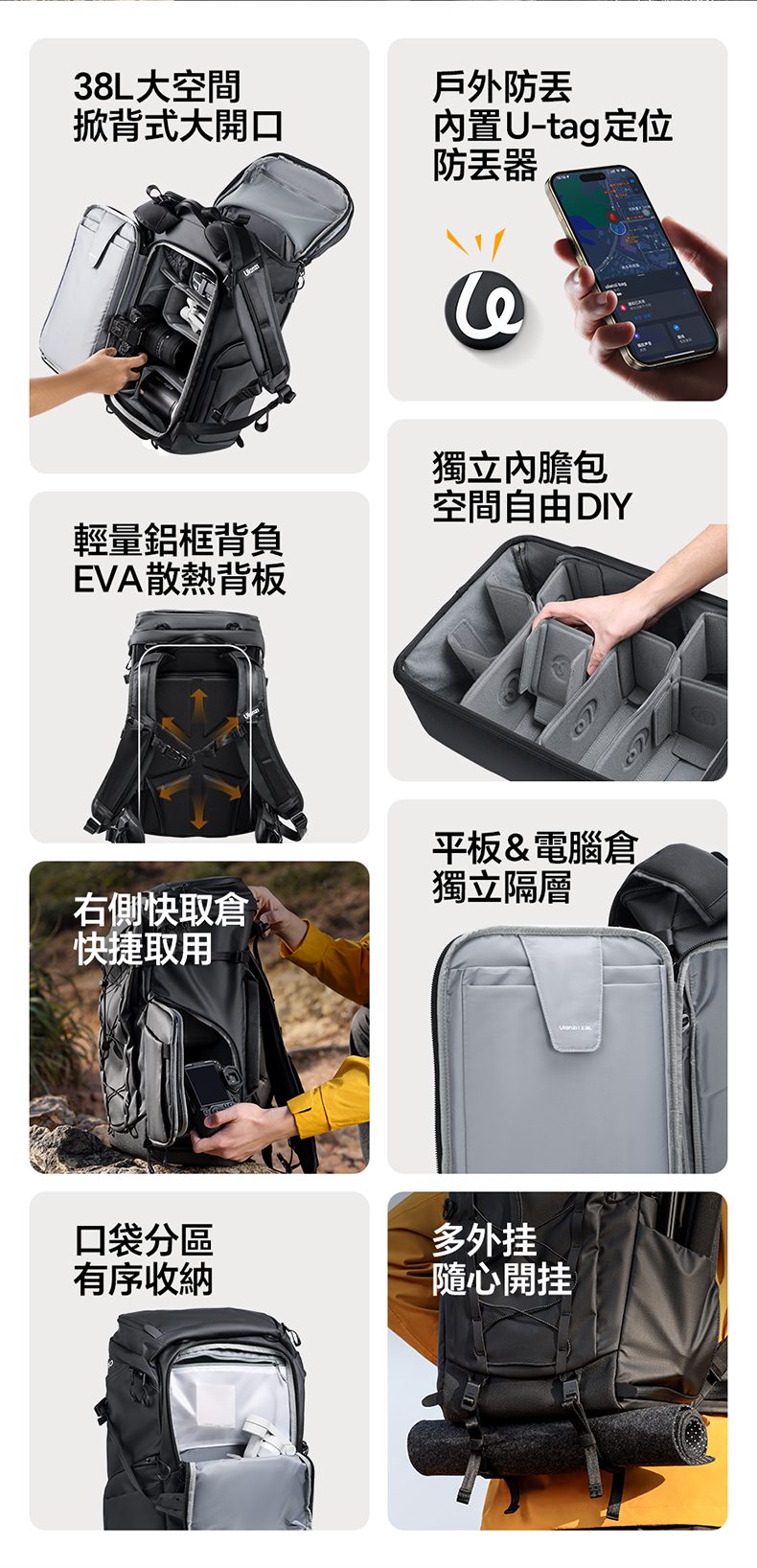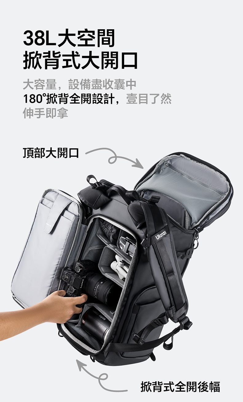 - 38L 大容量,掀背式大開口:設備一包盡收,180° 掀背式全開設計,輕鬆拿放,方便您快速取用所需物品。