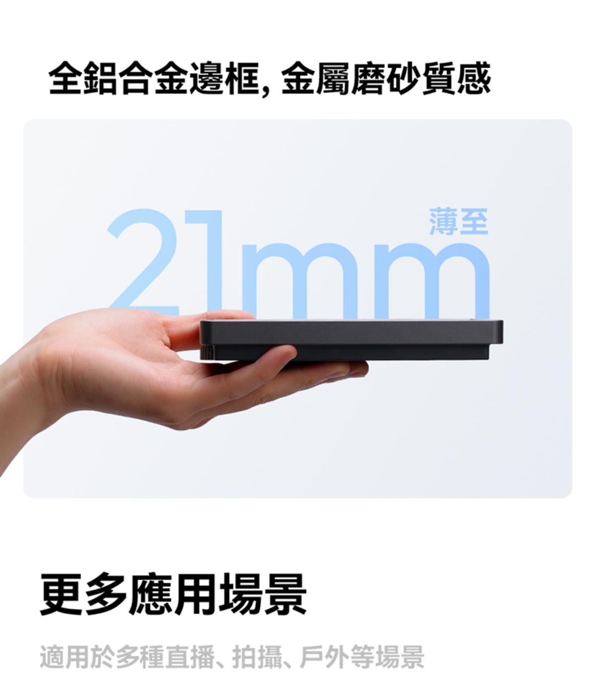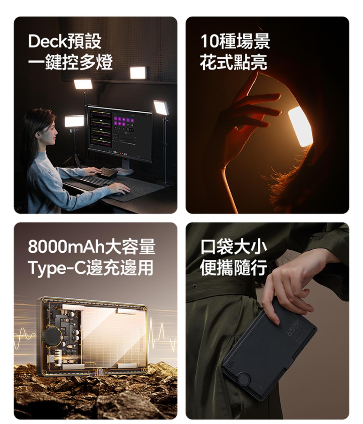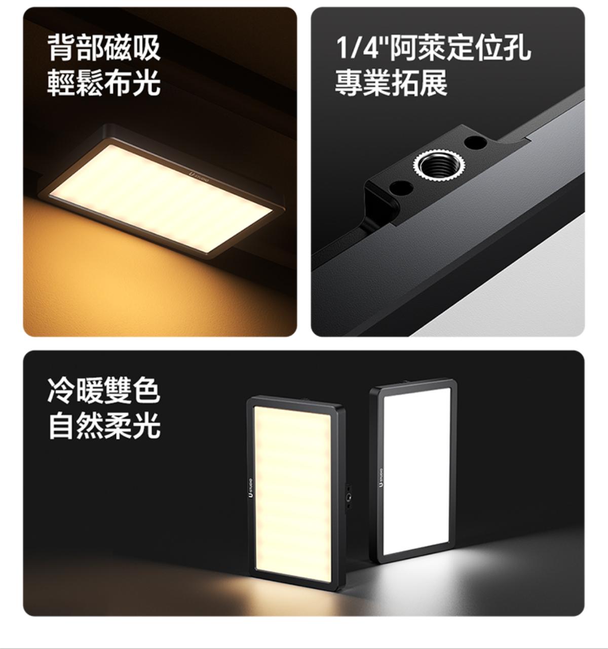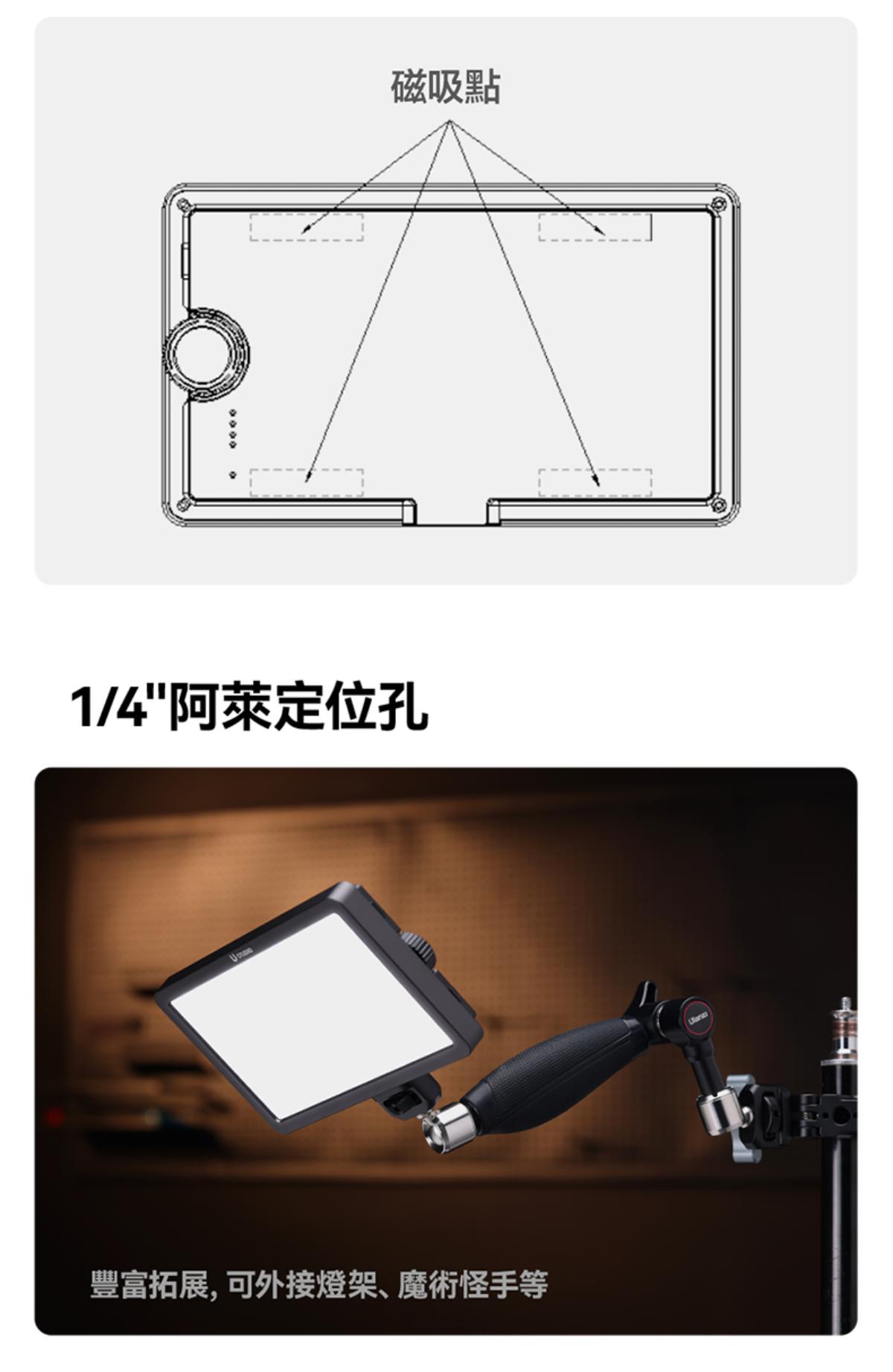 - 模組化磁吸設計:機身採用模組化構造,結合磁吸特性,既方便單獨使用,也能靈活組合多燈補光,同時重約 250 克的輕量化設計,便於調整擺放位置。