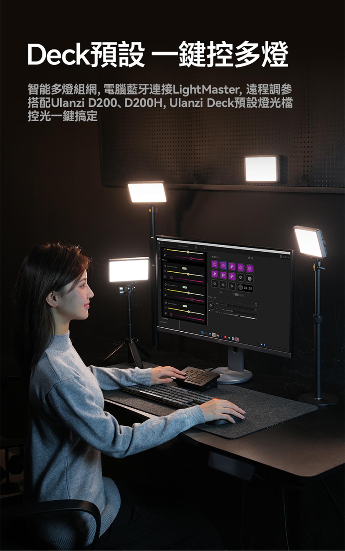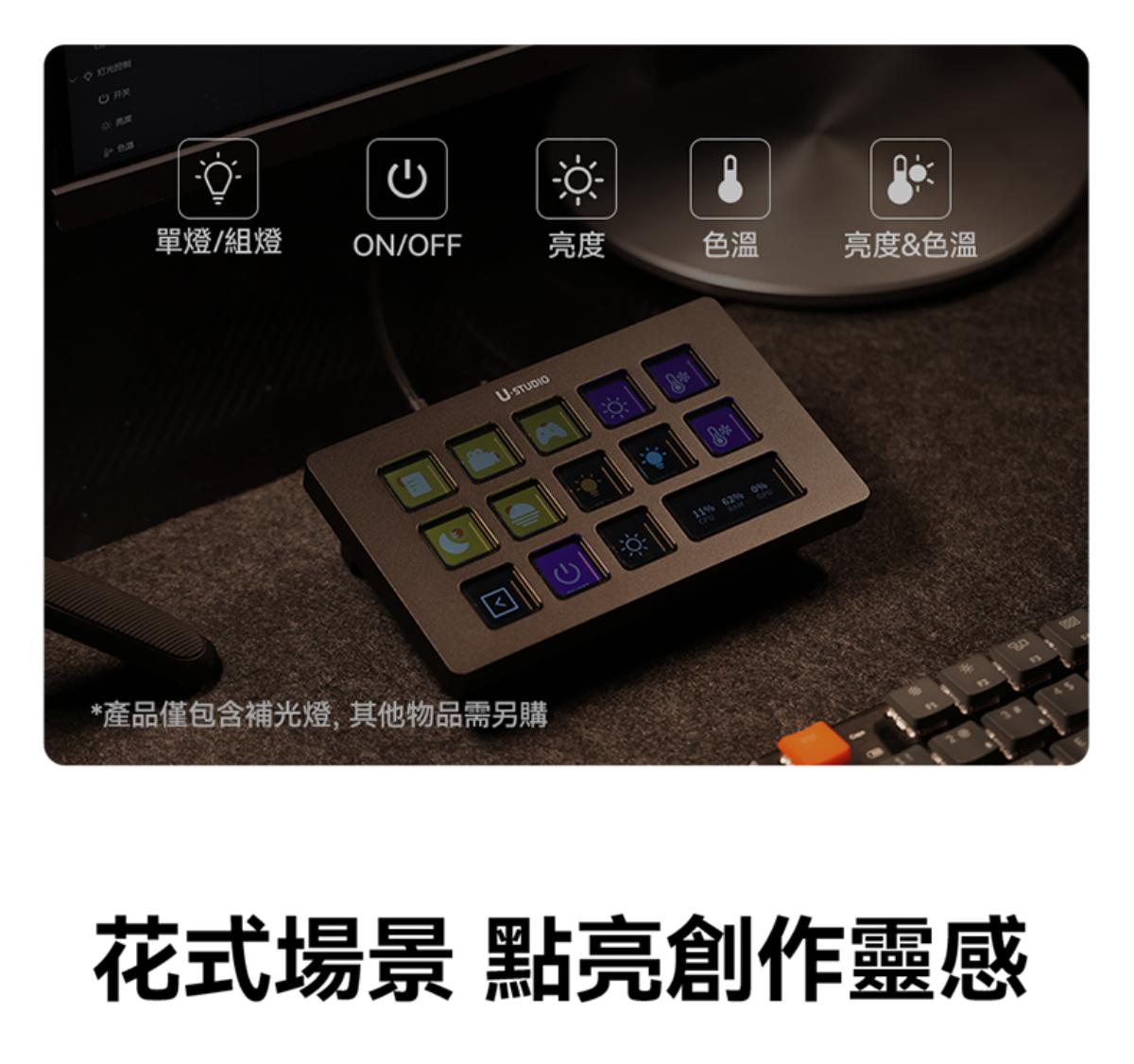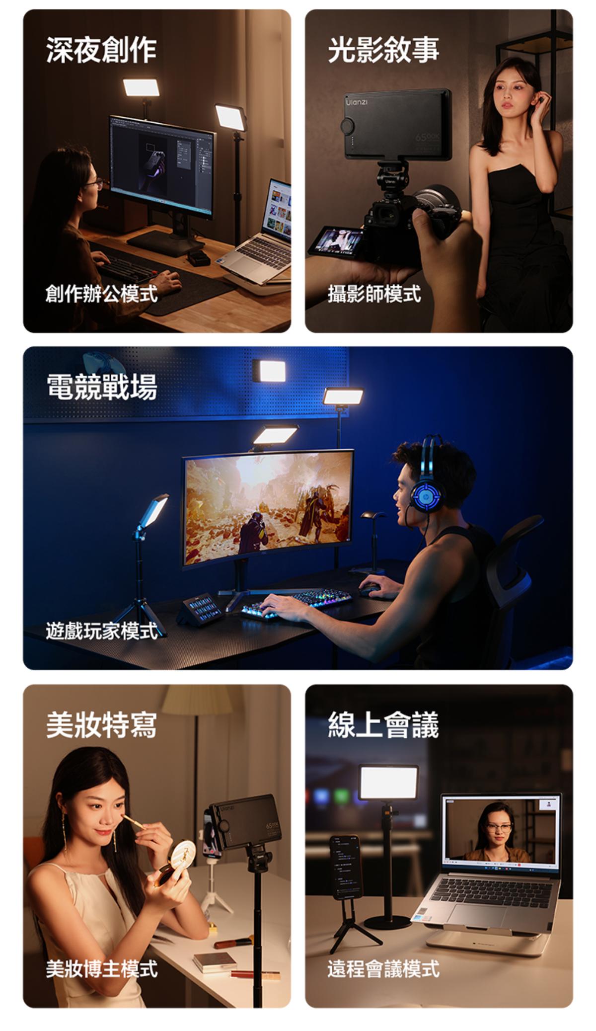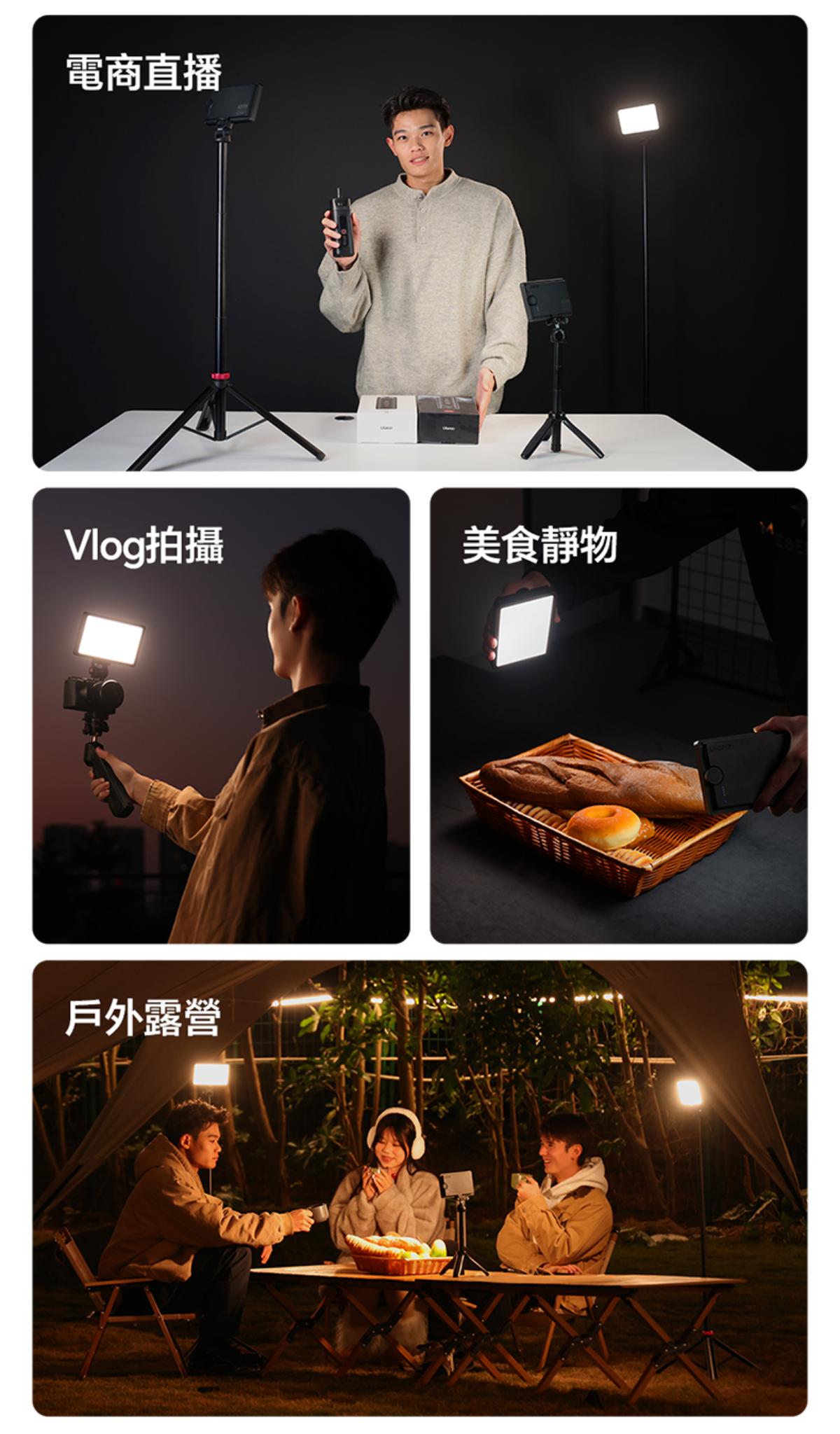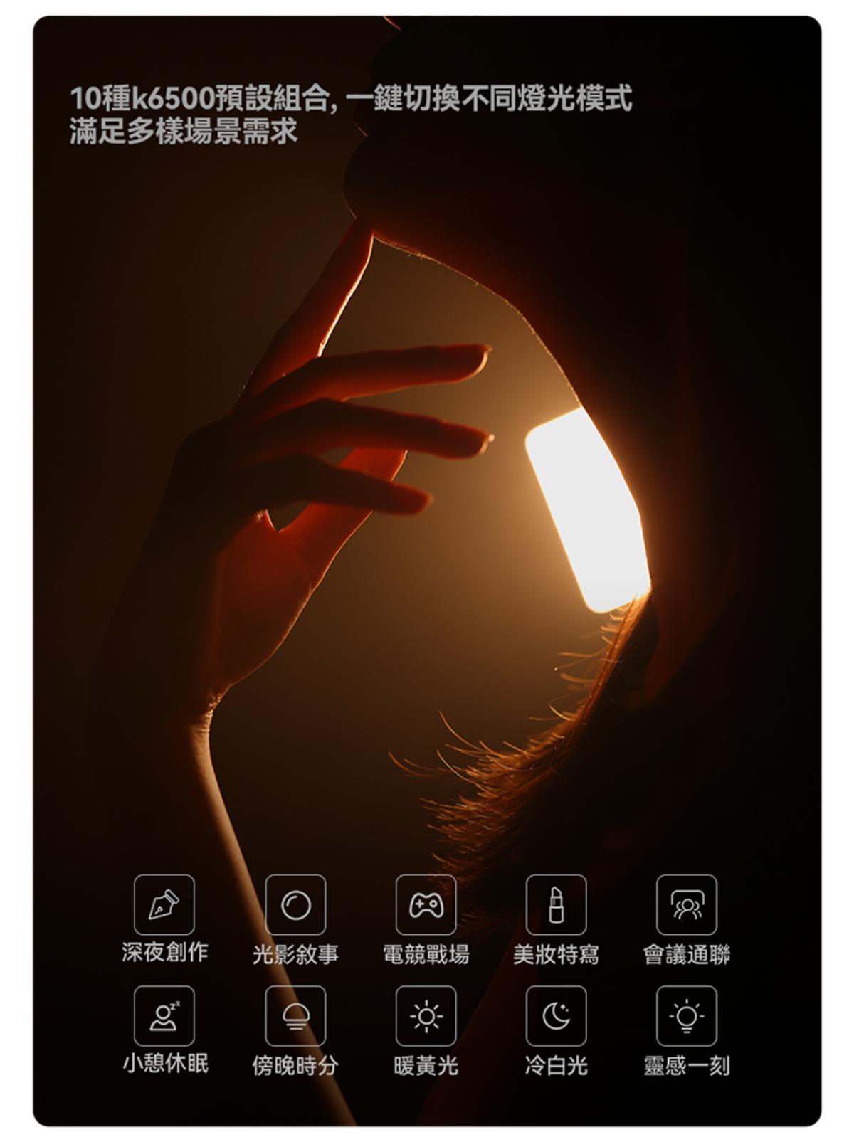 - 豐富光效與便利操作:內建 13 種場景光效(如模擬日光、燭光等),搭配獨立副螢幕與亮度、色溫 / 光效調整旋鈕,無需複雜設置,可快速切換所需補光模式。