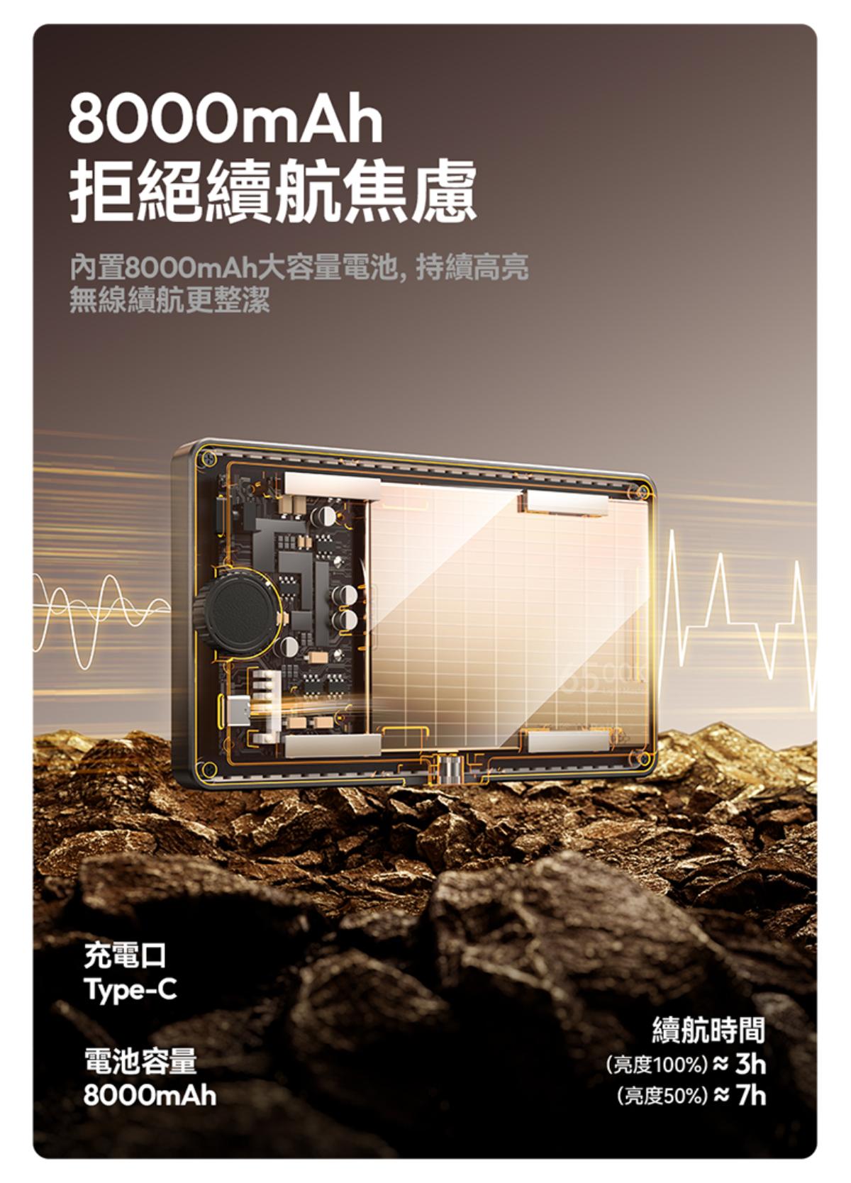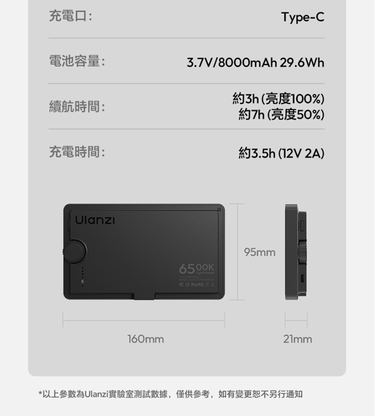 - 多模式靈活供電:支援電池模組、DC 電源轉接器、USB-C 三種供電方式,適配工作室固定場景與臨時行動補光需求,續航力可達約 40 分鐘,滿足不同拍攝時間需求。