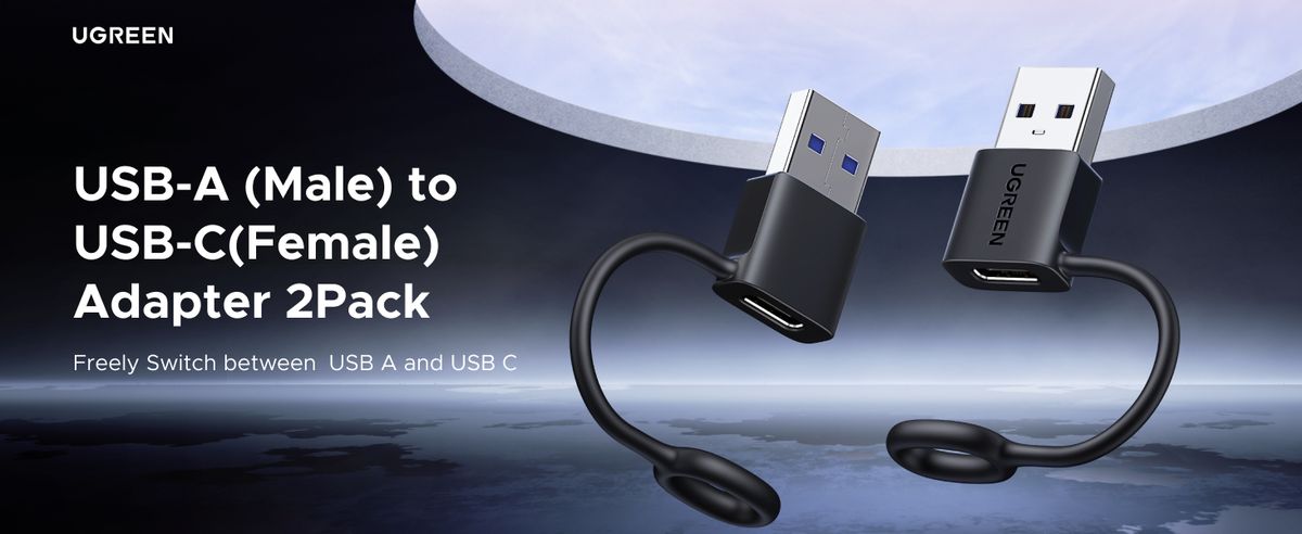 UGREEN 10Gbps USB to USB C 轉接器(帶掛環,2 件裝,Type A 公對 C 母,快速充電和同步轉換器,兼容 iPhone 17/16/15、Galaxy S25、MacBook Air、iPad Pro,黑色)