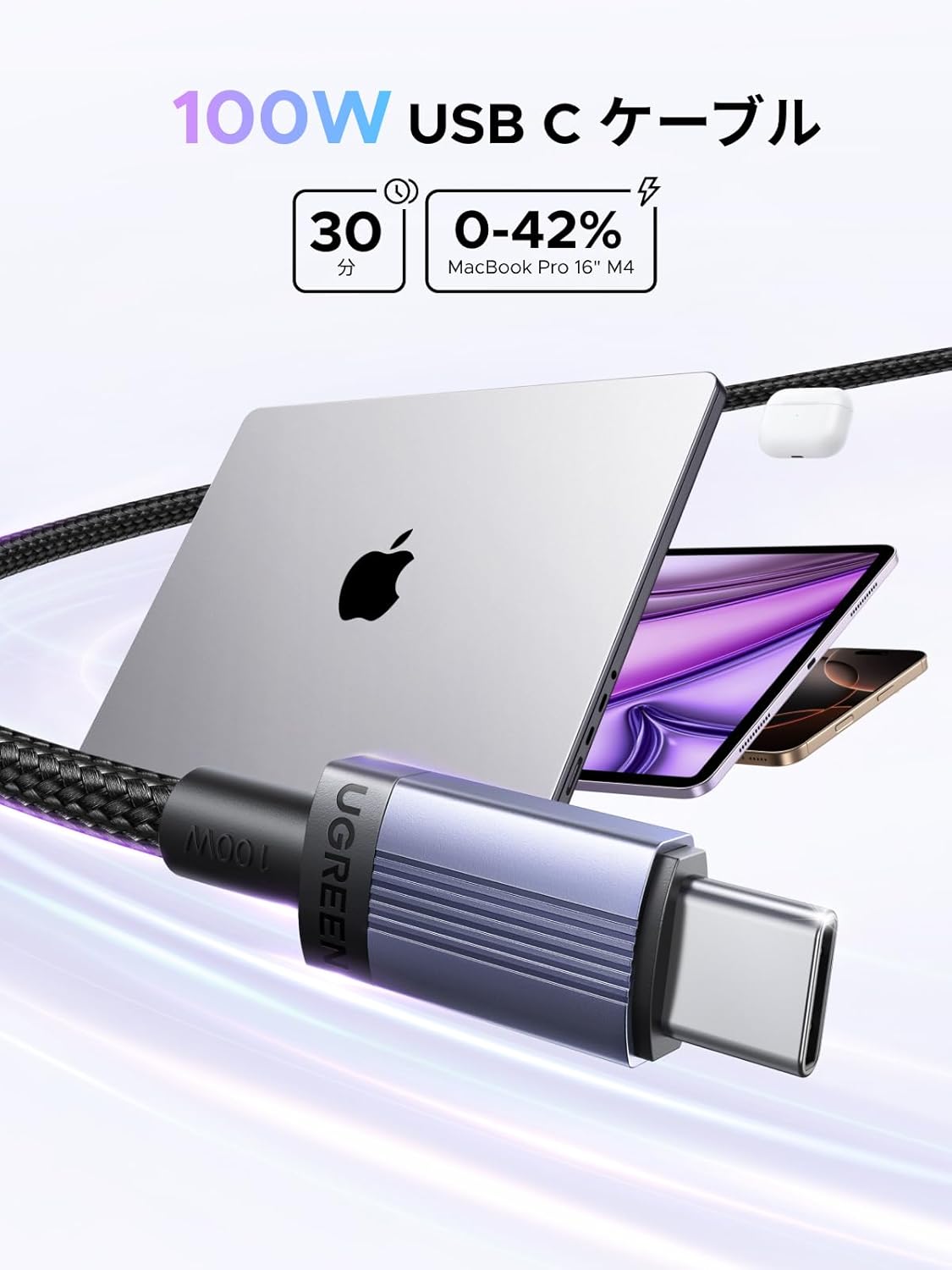 UGREEN – USB-C 轉 C PD 快速充電連接線 100W 1米 | L528/ 65832