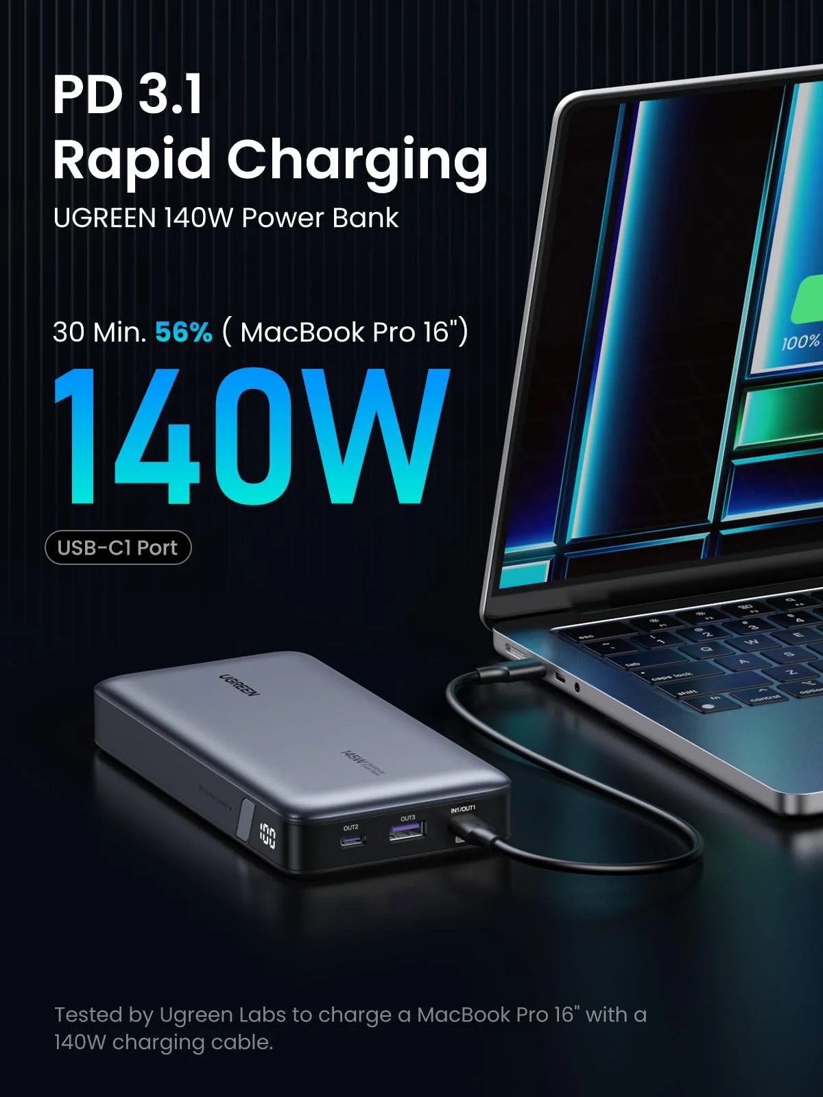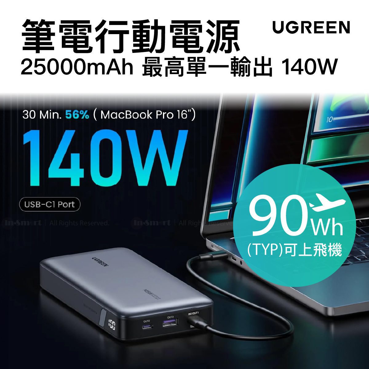 UGREEN 145W 25000mAh 手提電腦行動電源 (最高單一輸出 140W / 90Wh 可手提上機)