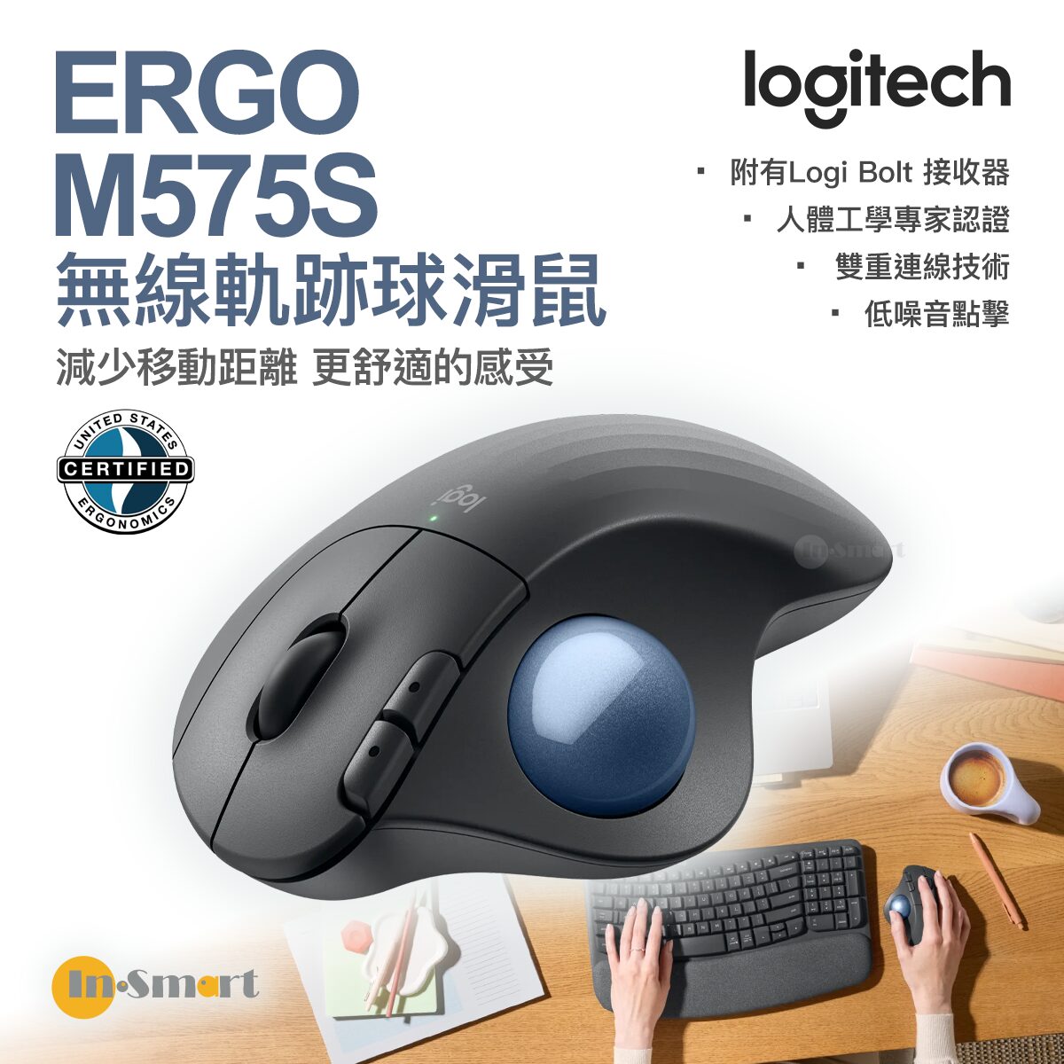 Logitech – ERGO M575S 無線軌跡球滑鼠 – 石墨灰