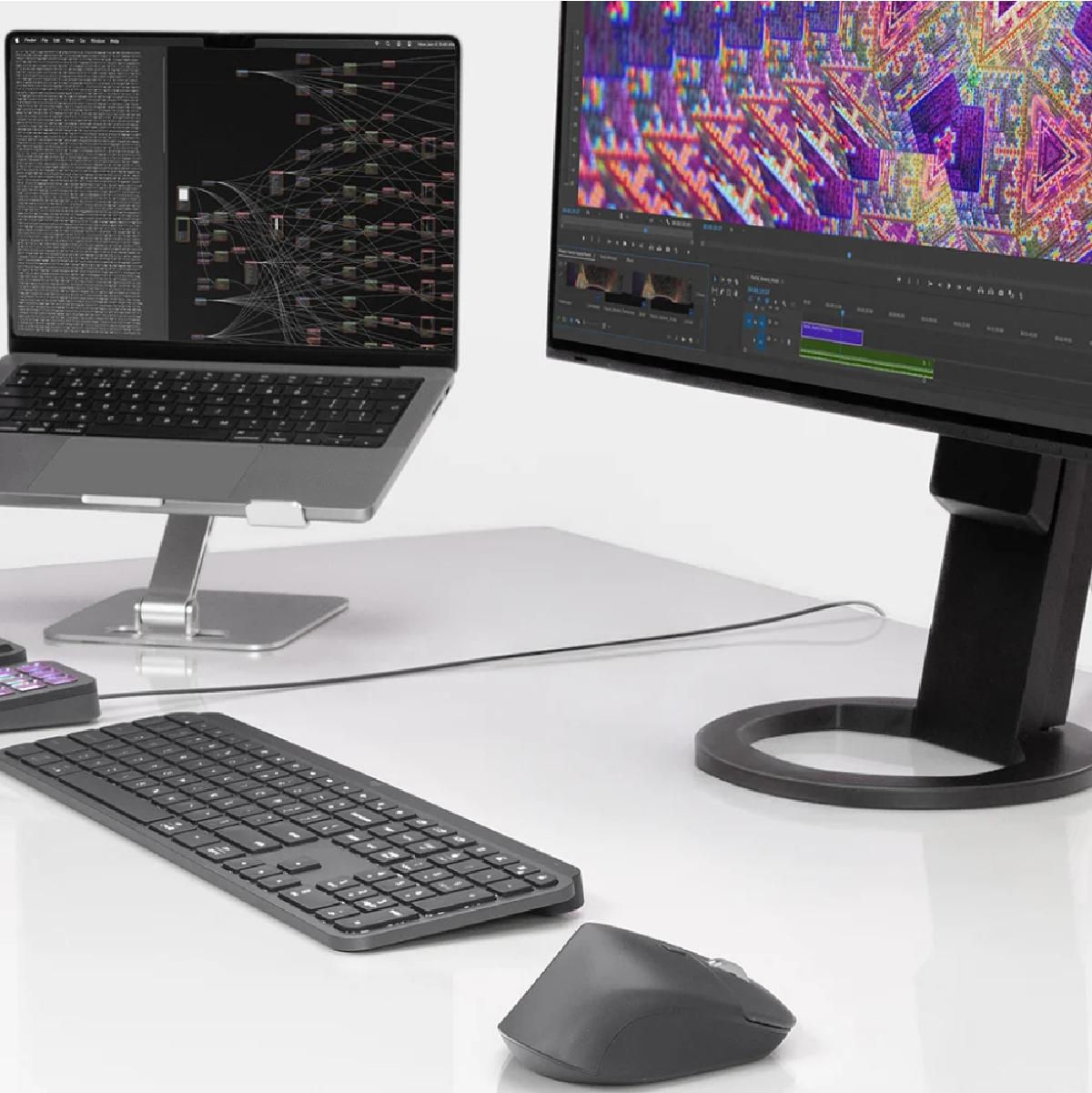 MX Master 4 具備可針對特定動作自訂的觸覺回饋,帶來您能親身感受的沉浸式控制與精準度。使用 Actions Ring 快捷鍵和 MX Master 4,在您的游標處存取工具和濾鏡,節省高達 33% 的時間。其他功能:2 倍更優異的連線能力、透過 MagSpeed 電磁滾輪實現超高速捲動、可在任何表面 (包含玻璃表面) 上追蹤的 8K DPI 感應器,以及用於自訂的 Logi Options+。