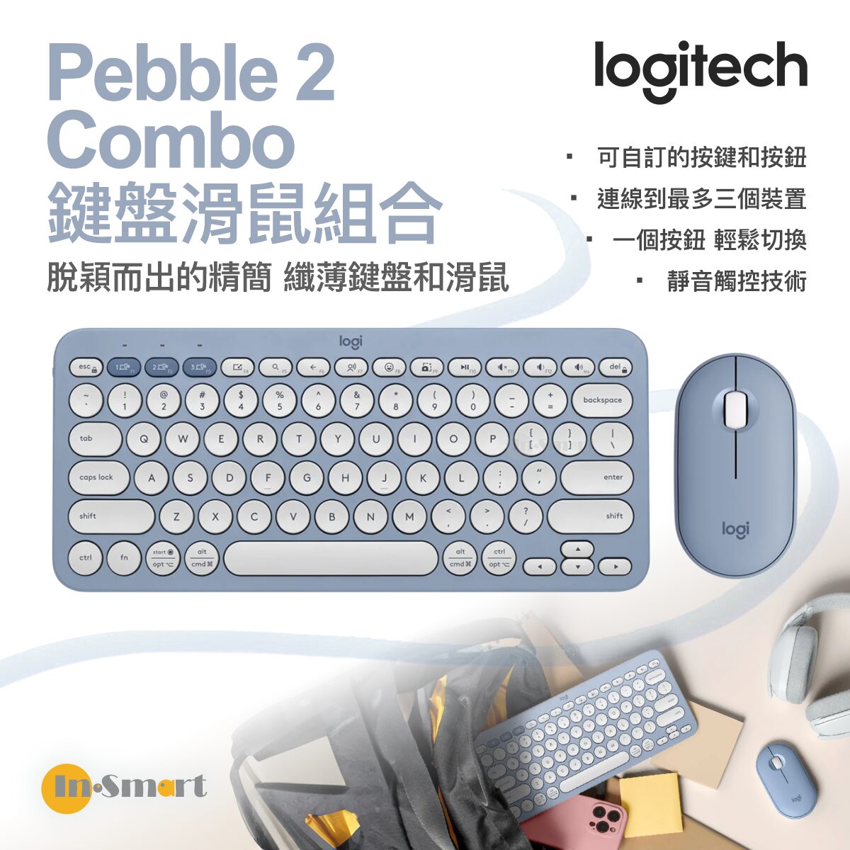 滑鼠: 3 個 Easy-Switch 藍牙頻道。