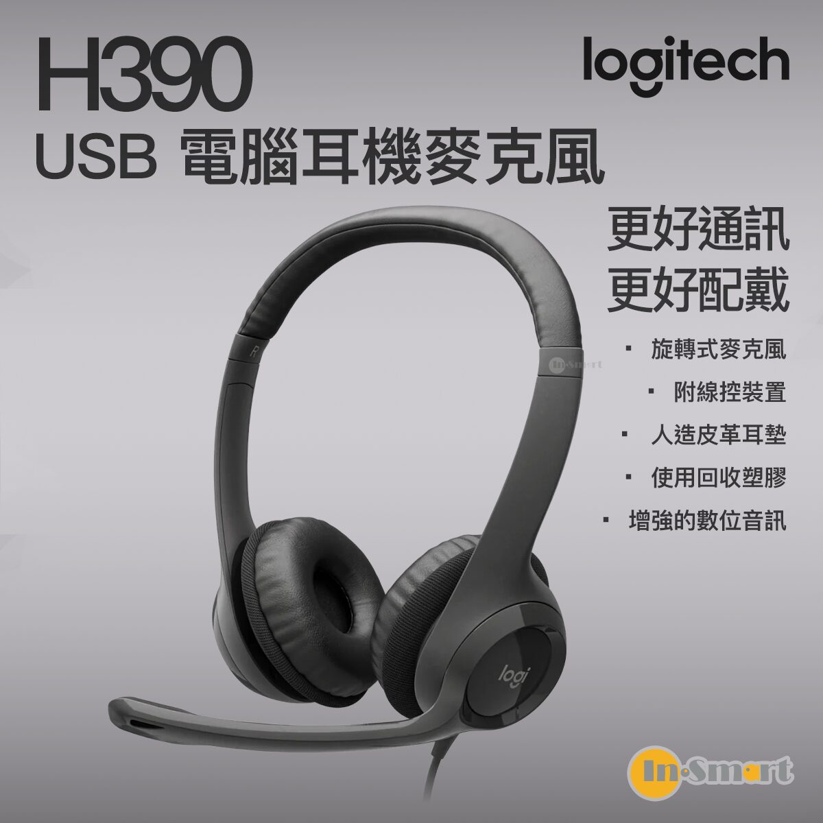 Logitech – H390 USB 電腦耳機麥克風 – 黑色|具有增強的數位音訊以及線控裝置