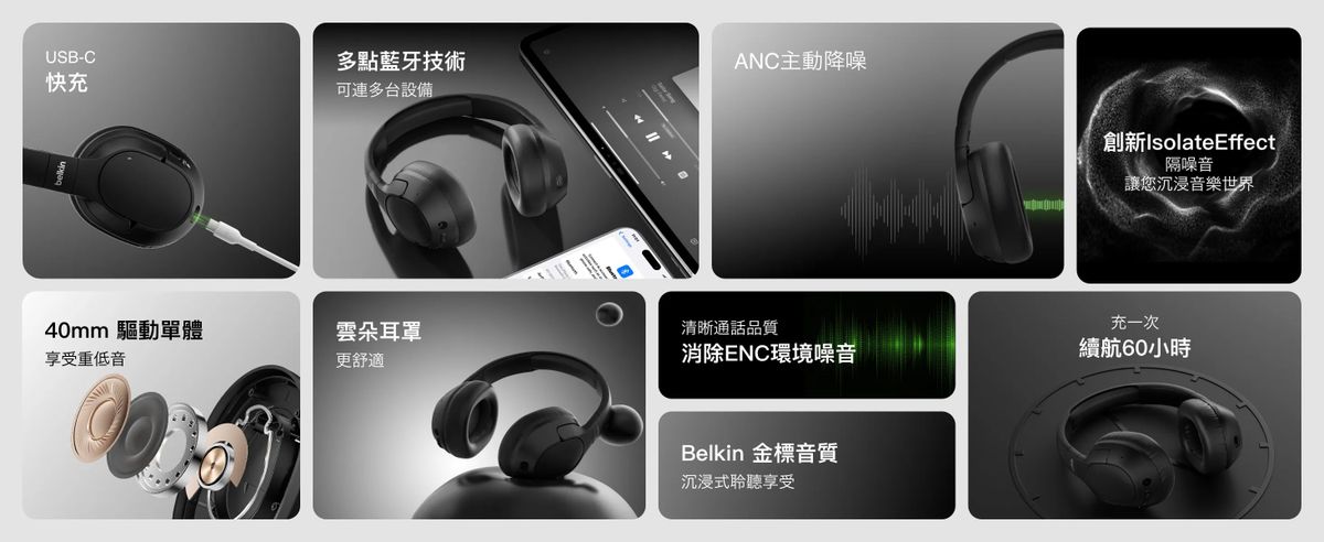 Belkin SOUNDFORM Isolate 頭戴式無線降噪耳機
