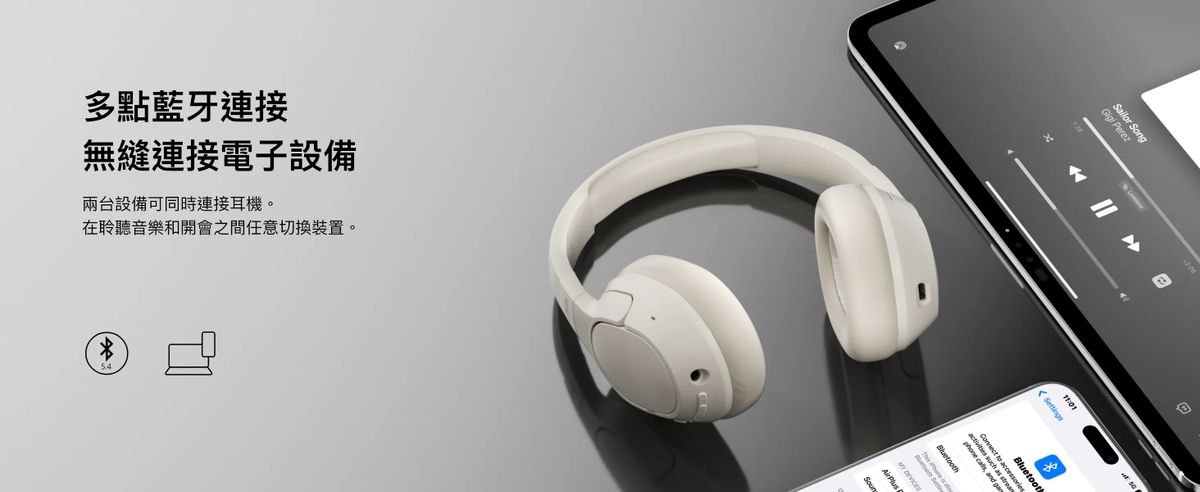- 多點雙裝置連線功能可在不同音源間輕鬆切換