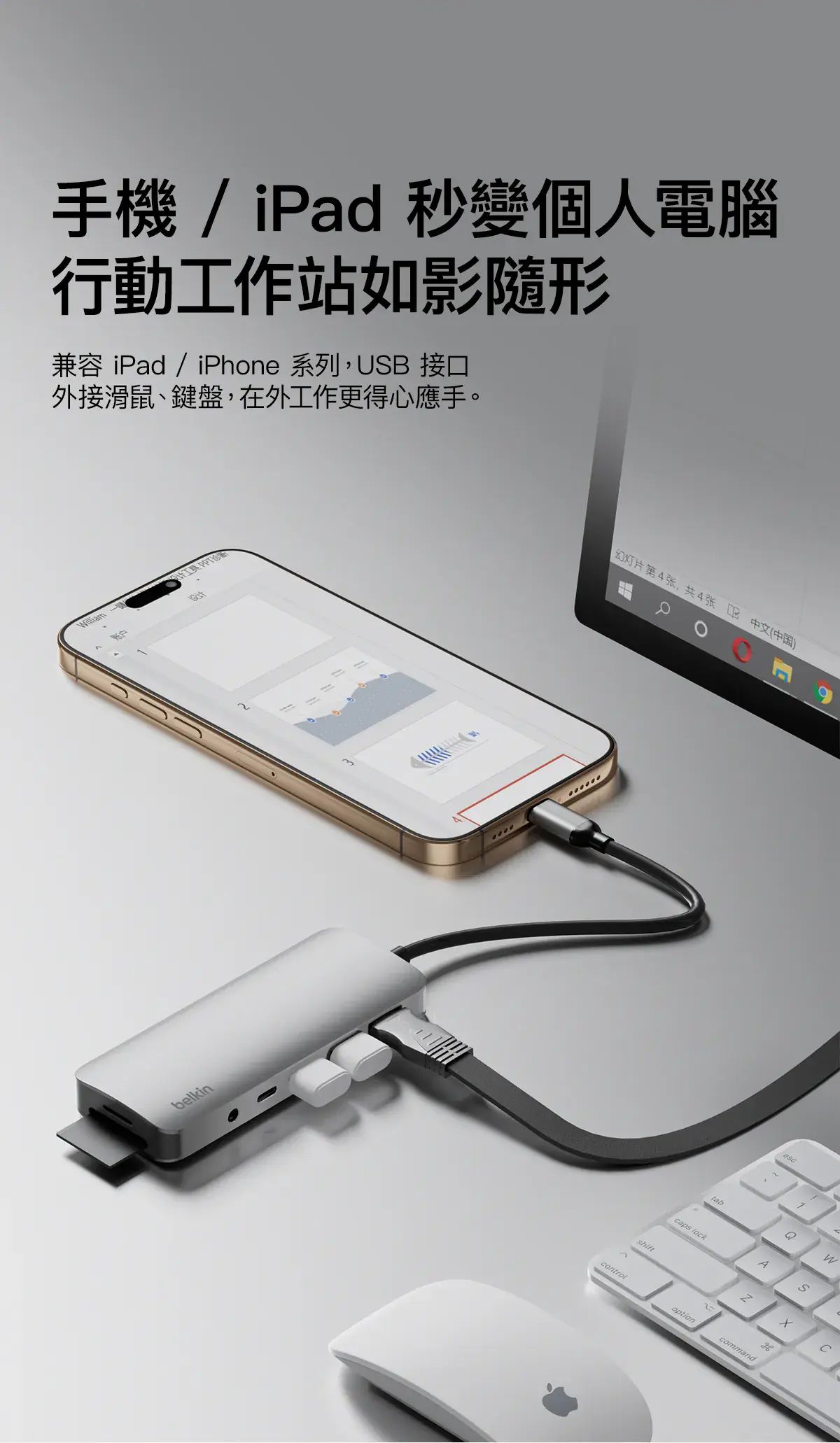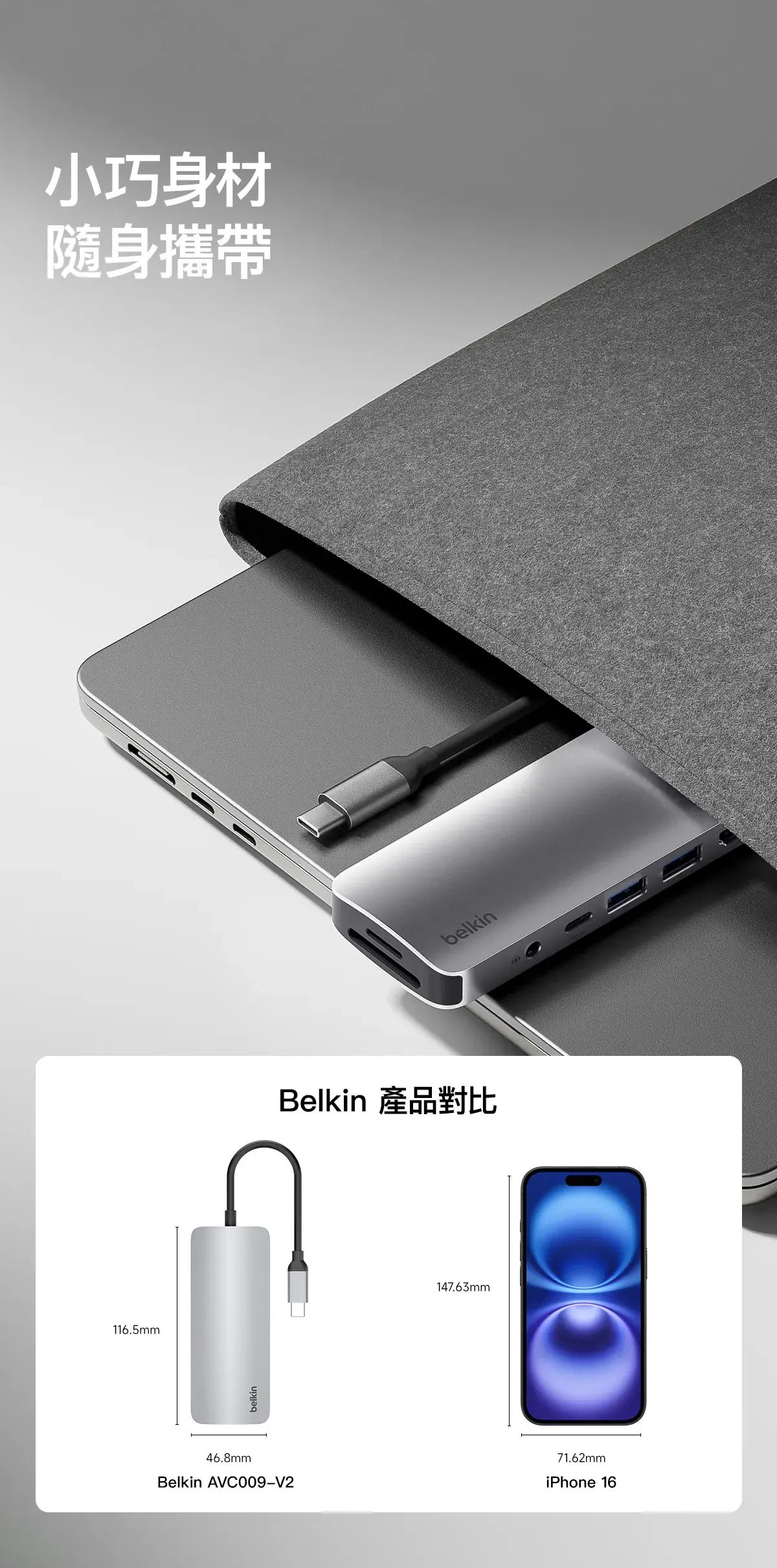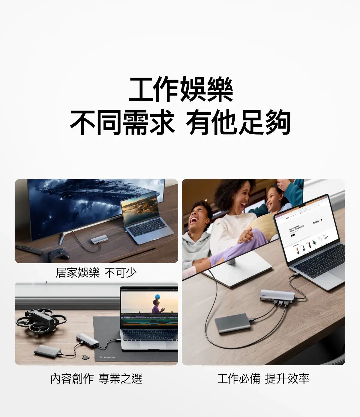 - 只需單個 USB-C 連接埠即可將手提電腦連接到 HDMI 連接埠、SD 和 microSD 卡插槽、1 個 USB-C PD 3.0 連接埠,以及 2 個 USB-A 連接埠