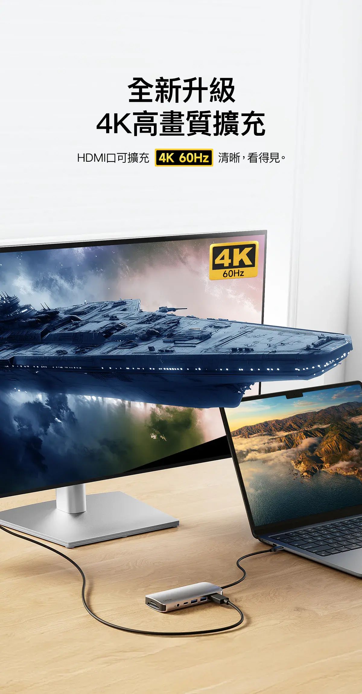 - 獲得高達 60Hz 的 4K 高清解像度