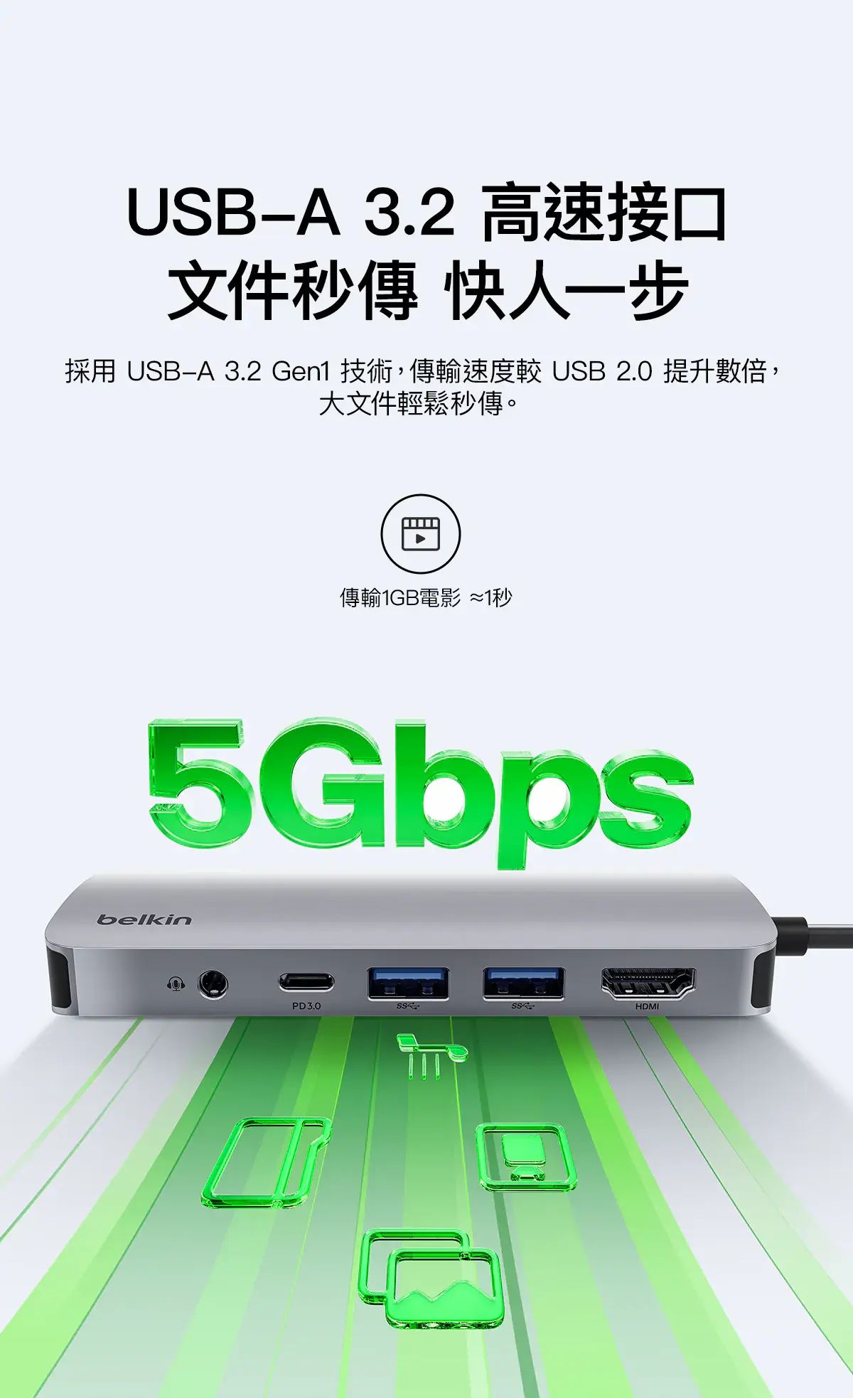 - 最高 5Gbps 的資料傳輸速度