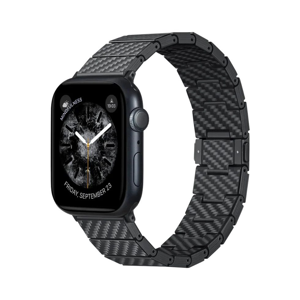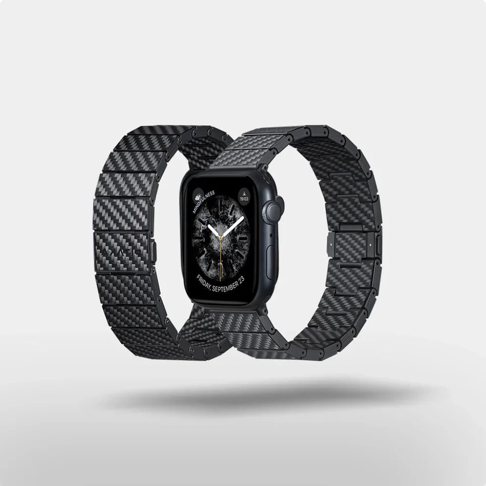 全球首款 100% 碳纖維鏈接手錶帶,兼容所有 Apple Watch 型號,包括 Series 9-1、SE 和 Ultra 2/Ultra。