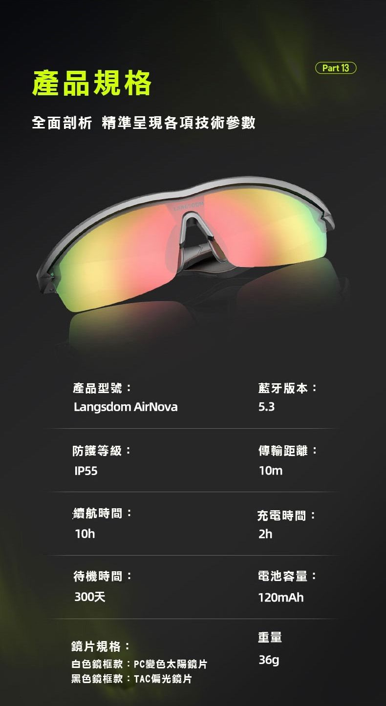 Langsdom AirNova UV400 IP55 防汗水 藍牙立體聲 運動太陽眼鏡 | 防紫外線 偏光 防反射