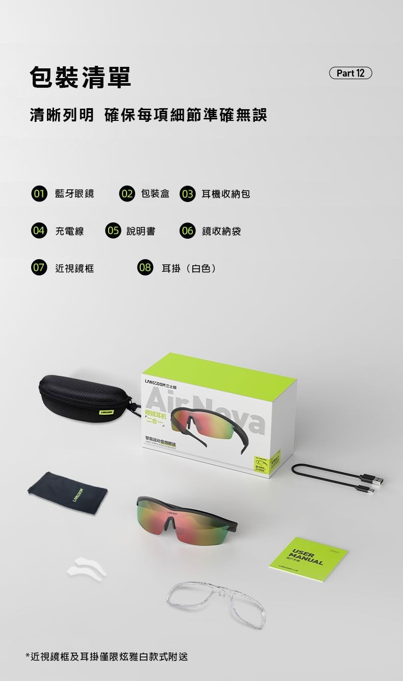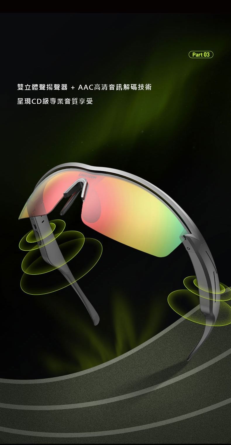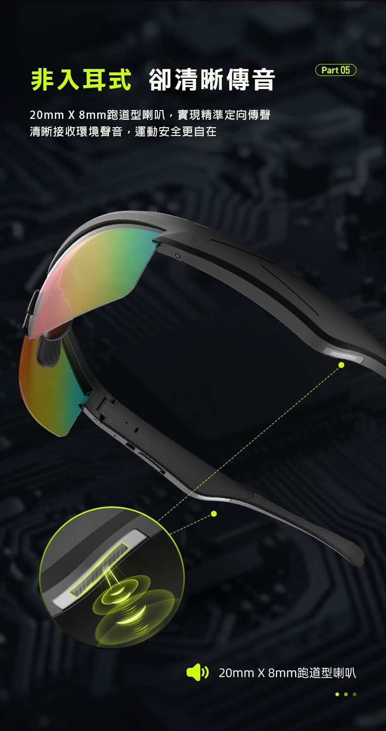 開放安全音效:20mm x 8mm 的揚聲器進行精準的聲音傳輸,確保周圍環境音的清晰監控,讓活動更加安全和自由。