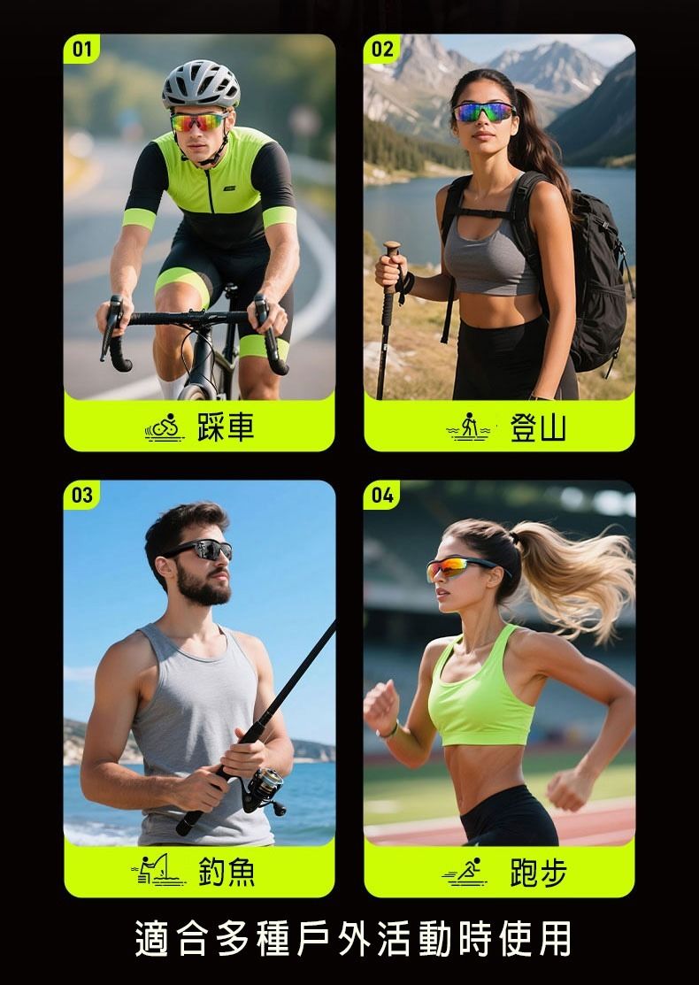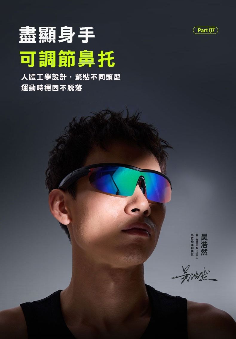 耐用設計:UV400 鏡片可防止有害紫外線,IP55 防水/防汗設計,抵禦風暴和運動中的汗水。
