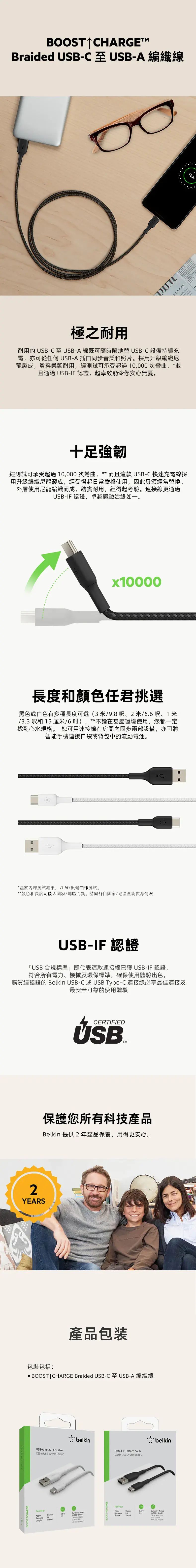 - 採用 Belkin PCR 物料編織製成,可承受 350,000 次以上的彎折及 20,000 次以上的插拔‡