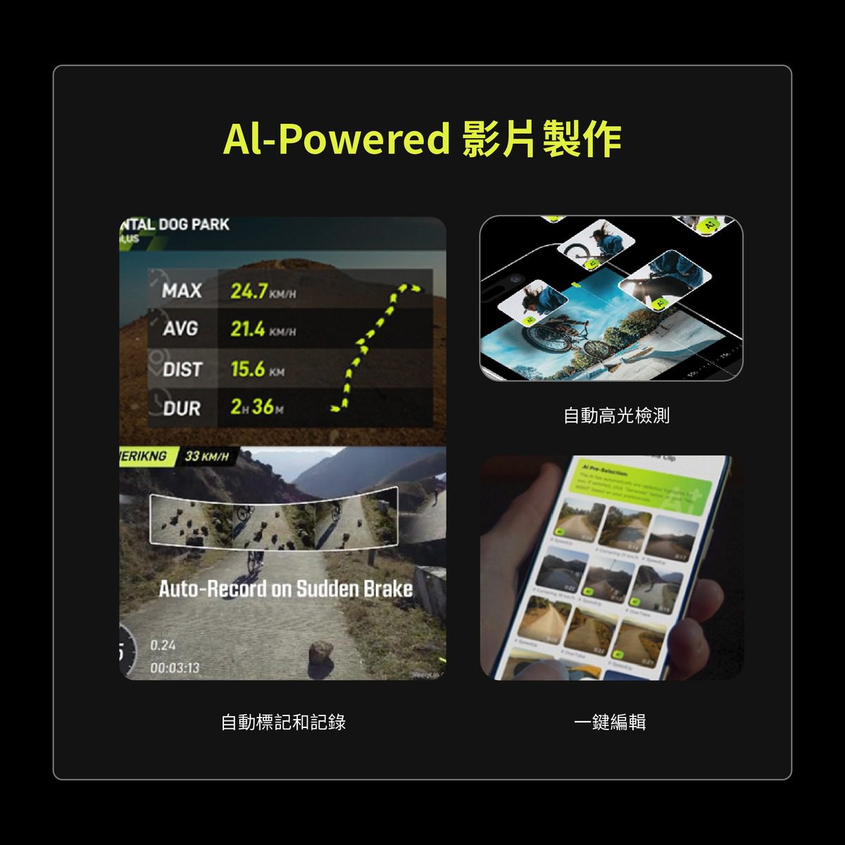 - AI 智慧功能:自動偵測精彩時刻(風景、急煞等)、一鍵 AI 剪輯生成高光影片、手動標記重點、即將推出語音命令(支援連接 ChatGPT、Siri 等)。