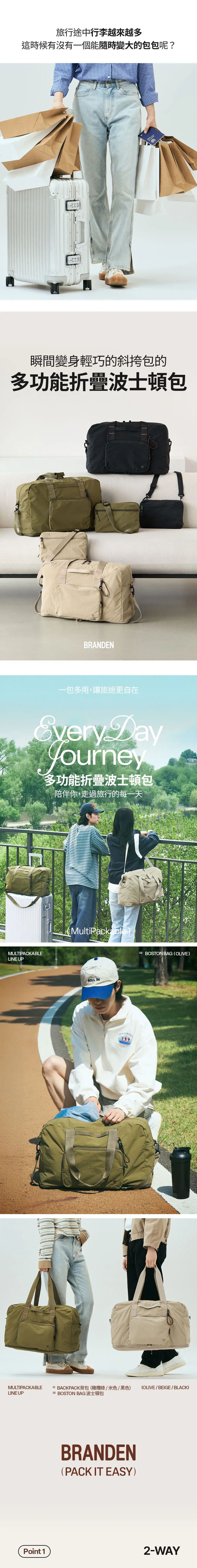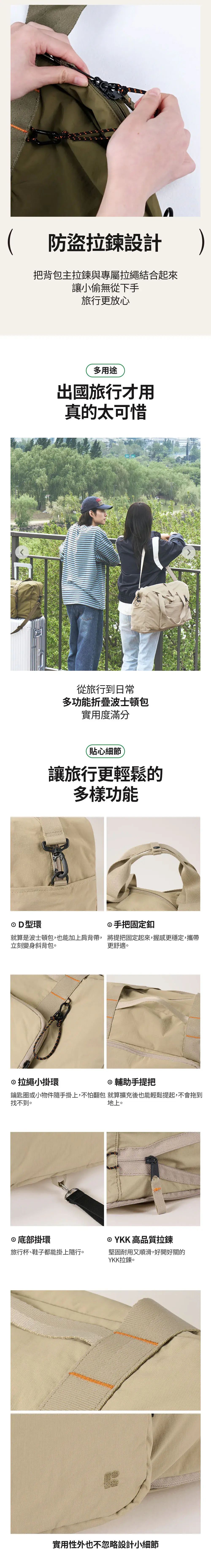 BRANDEN – 多功能折疊波士頓包 [米色] 可擴展旅行袋 36L 大容量 防潑水摺疊行李袋 斜孭手提 YKK拉鍊 適合出差短途旅行