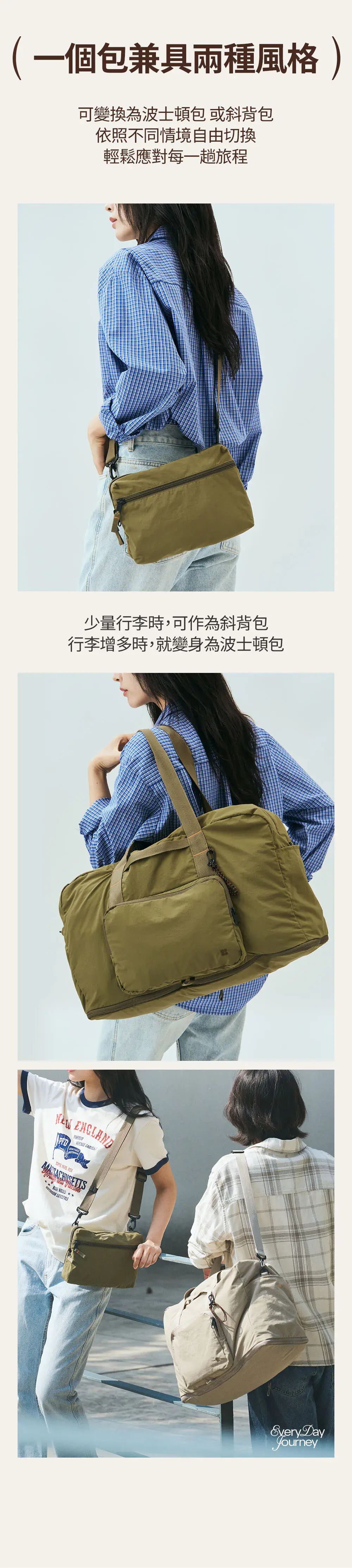 • BRANDEN - 多功能折疊波士頓包 [米色] 可擴展旅行袋 36L 大容量 防潑水摺疊行李袋 斜孭手提 YKK拉鍊 適合出差短途旅行
