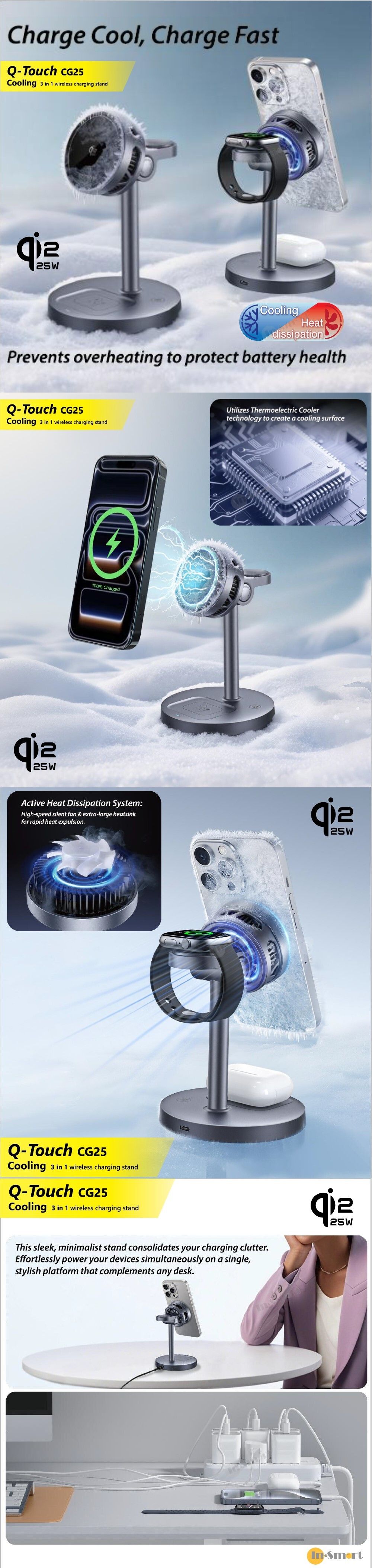 Capdase Q-Touch CG25 3合1 磁吸無線充電座(主動冷卻 + Qi2.2 25W 超快充)