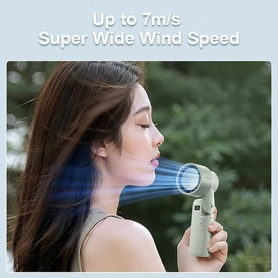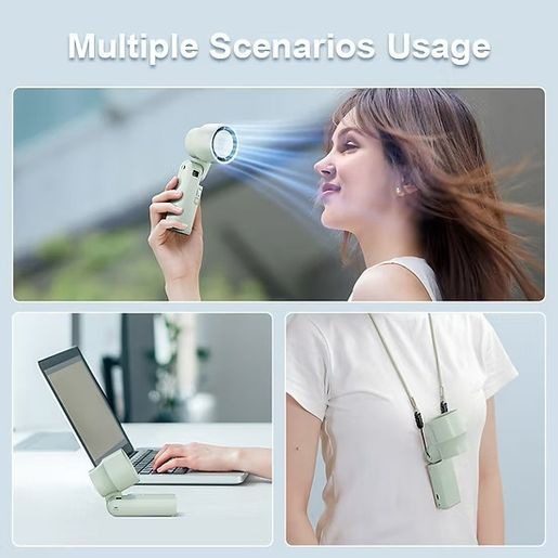 • 180 度多角度摺疊: 扇頭可 180 度調節,不僅可手持,還能摺疊放置桌面或掛頸使用,靈活多變。