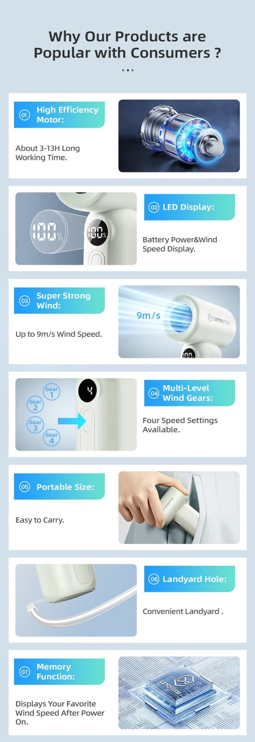 ・轉速可達 17100RPM, 可吹出9.5m/s強風