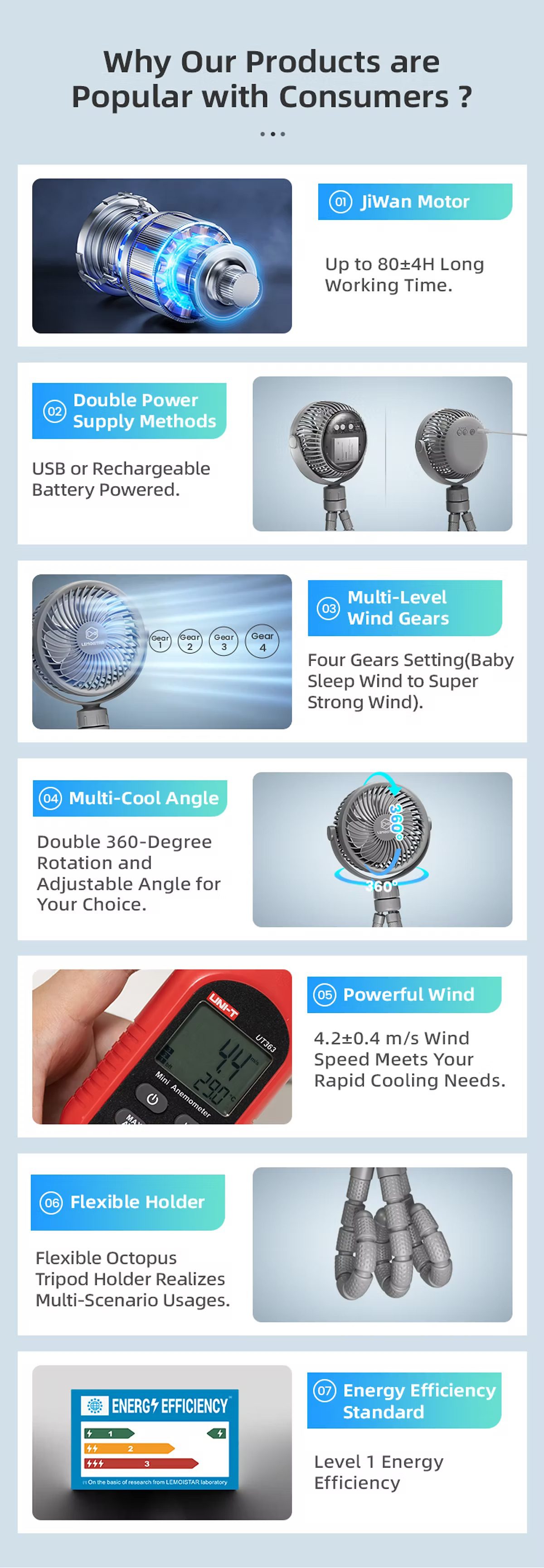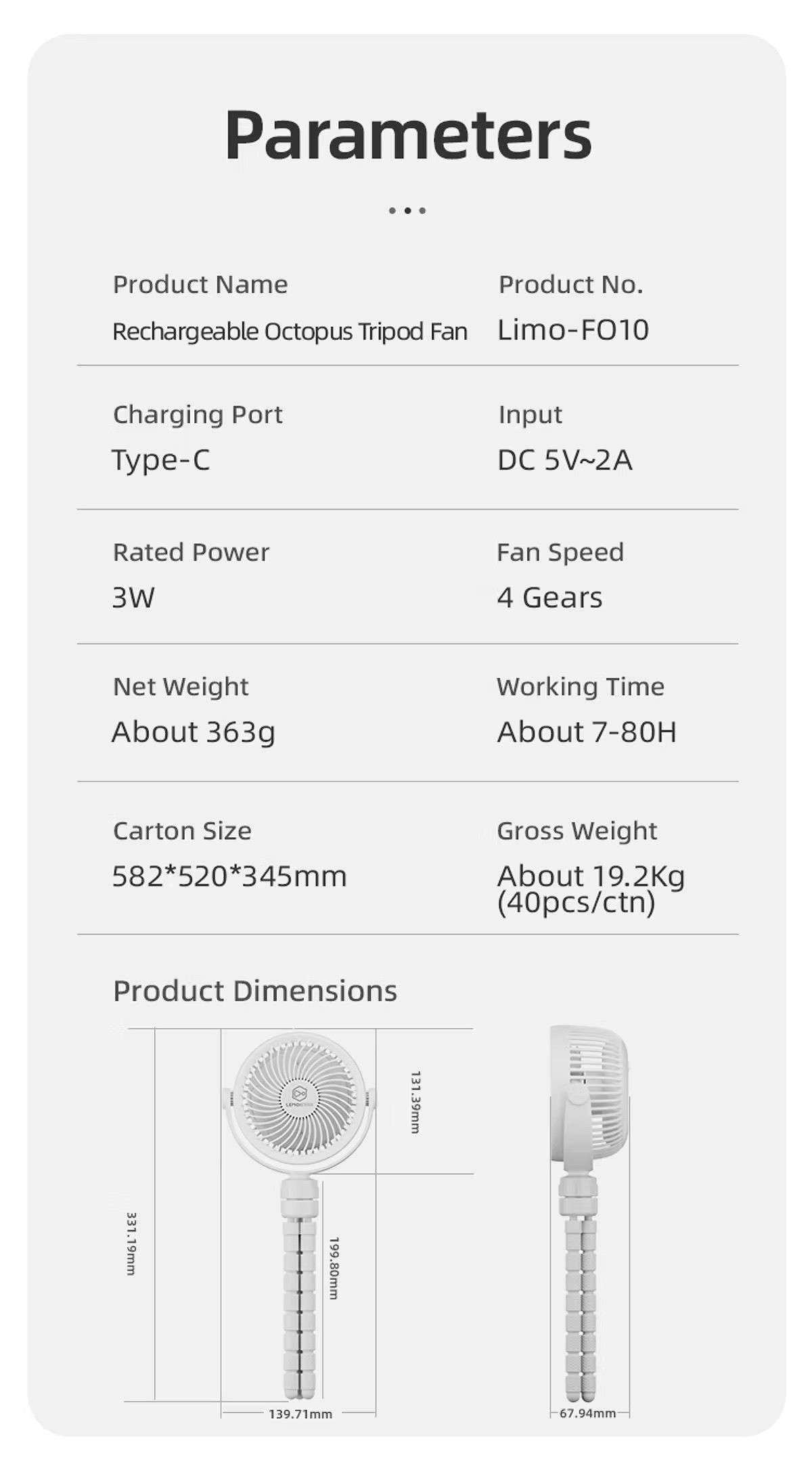 Lemoistar FO10 長續航可拆式風扇 (80hrs)
