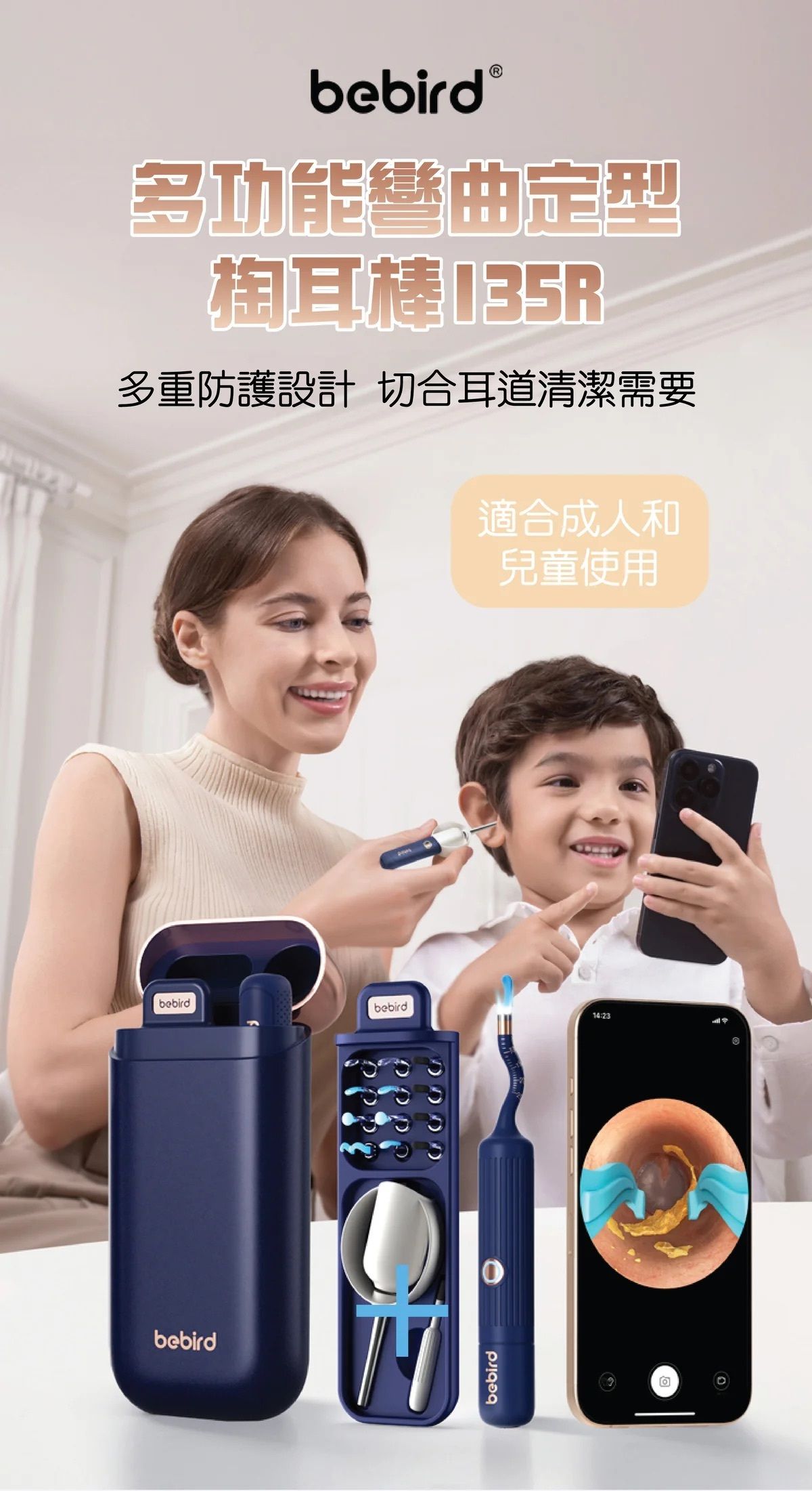 Bebird全新推出多功能彎曲定型I35R,可視式掏耳棒,專業級高清3P內視鏡,穩定傳輸,讓耳道清潔更加潔淨,耳棒標示了刻度,讓用家了解耳道深淺,防止耳道受損。